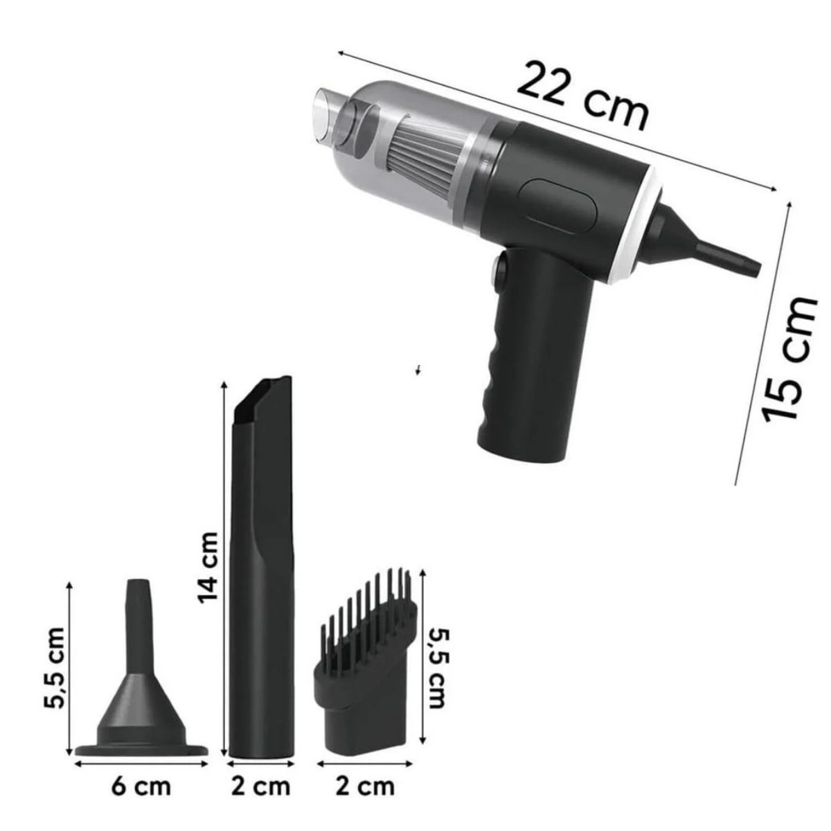3in1 Araç İçi Kablosuz Şarjlı Mini El Süpürgesi Vakum ve Üfleme (5365)