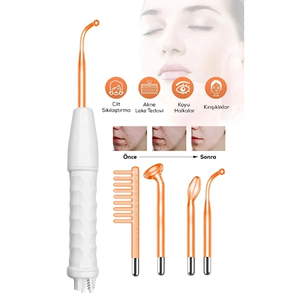 4 BAŞLIKLI YÜKSEK FREKANSLI CİLT BAKIM ANALİZ CİHAZIÜrün Özellikleri4 başlıklı yüksek frekanslı cilt bakım analiz cihazı, cilt sıkılaştırma, akne ve leke görünümünü azaltma, koyu halkalarla mücadele ve ince kırışıklıkların görünümünü hafifletmeye yardımcı olacak şekilde tasarlanmıştır. Yüksek frekans teknolojisi sayesinde cilde uygulandığında kan dolaşımını destekler, cildin daha canlı ve pürüzsüz görünmesine katkı sağlar. Farklı kullanım alanları için özel olarak tasarlanmış 4 ayrı başlığı ile yüzün farklı bölgelerine kolayca uyum sağlar ve hedefe yönelik bakım imkânı sunar. Ergonomik tutma sapı sayesinde evde konforlu ve kontrollü kullanım sağlar. Düzenli kullanımda cilt görünümünün toparlanmasına, daha aydınlık ve sağlıklı bir cilt hissi oluşmasına yardımcı olur. Evde pratik cilt bakımı yapmak isteyen kullanıcılar için ideal bir çözümdür.Paket İçeriği1 adet 4 Başlıklı Yüksek Frekanslı Cilt Bakım Analiz Cihazı