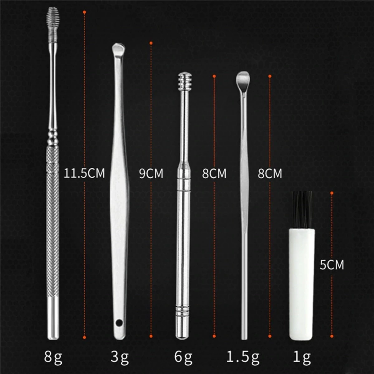 6 Parça Paslanmaz Çelik Kulak Balmumu Toplayıcı Çıkarıcı Temizleyici Bakımı Çubuk Seti (5365)