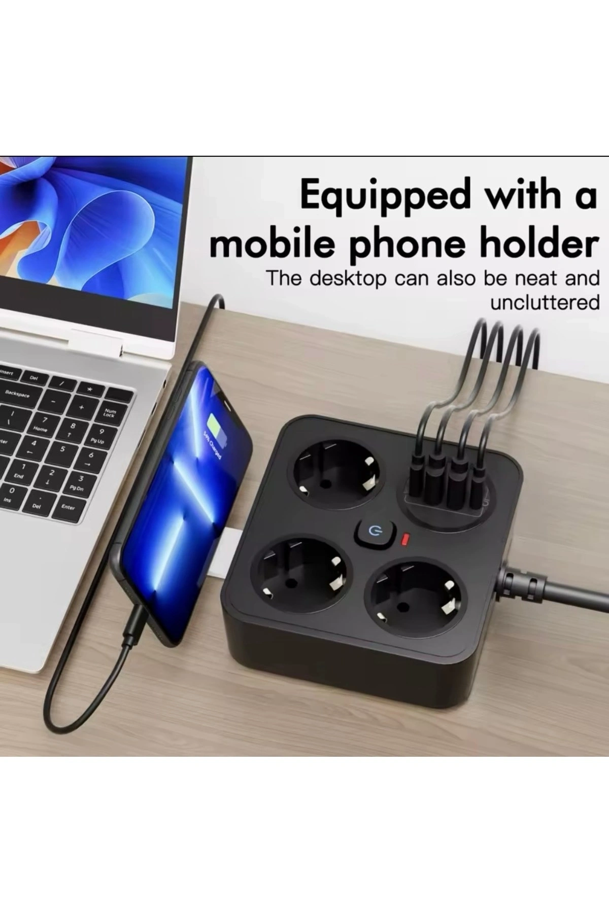 AKIM KORUMALI Avrupa Soket Kartı Tip-C Usb 2 m Uzatma Kablosu Emniyet Anahtarı ile