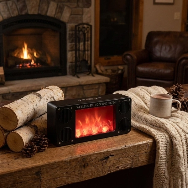 Alev Şömine Efektli Bluetooth Hoparlör Siyah