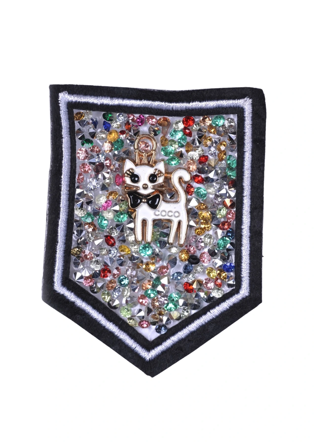 Aplike Ütü İle Yapışan Taşlı Kedi Arma 5 cm