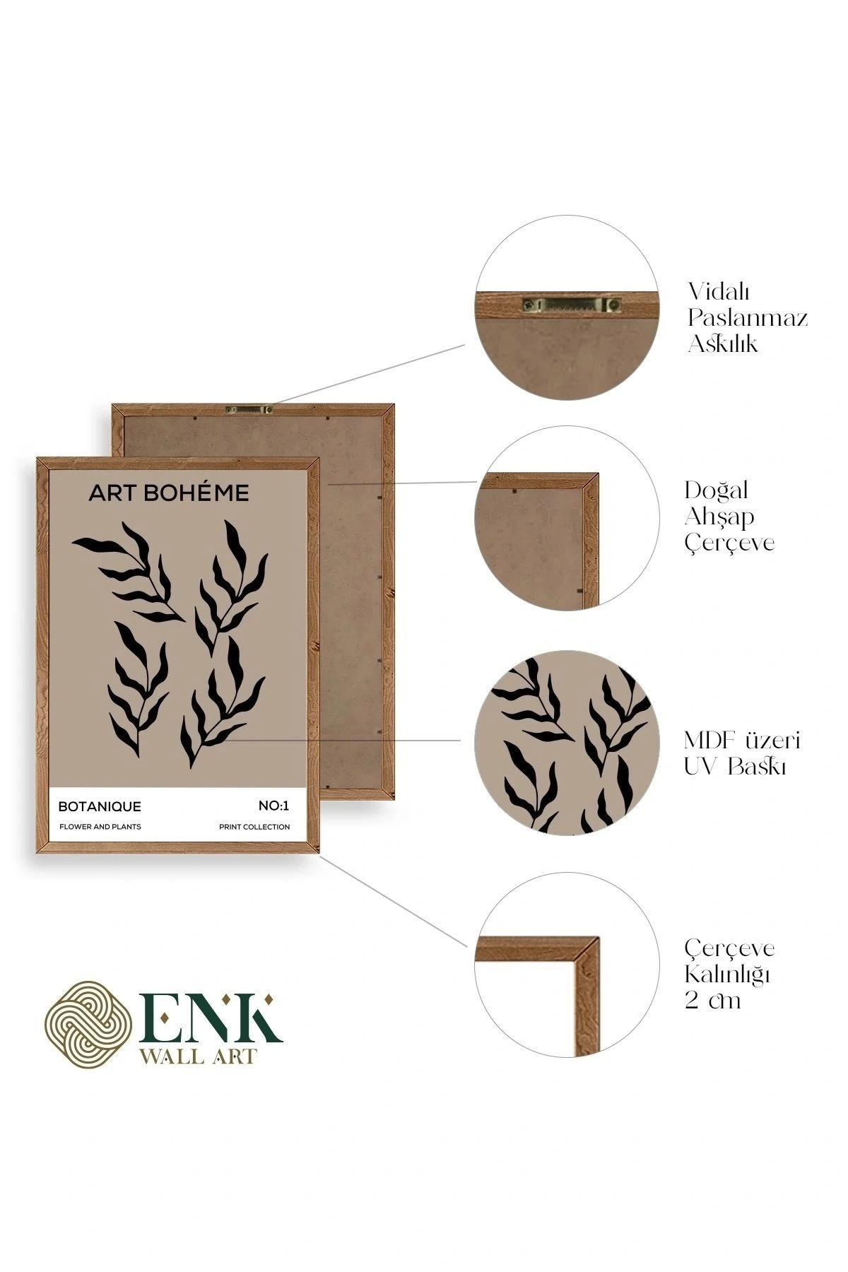 Tablolarımız gerçek ahşap çerçevelidir, çerçeve görünümlü değildir. ; ENK Wall Art Olarak Ahşap Çerçeveli Tablolar Üretiyoruz. ; Tablolarımız tek parça, 3 Parça, 5 Parça ve daha çok kategoride tasarımcılarımız tarafından ev ve ofisleriniz duvarları süslemek için tasarlanmaktadır. ; Ahşap Çerçeveli Duvar Tabloları ile yaşam alanlarınıza yepyeni bir görünüm kazandırın. ; Yıllarca dayanacağından emin olduğumuz sağlam çerçevelere sahip yüksek kaliteli ahşaptan üretilmiştir. ; İster bir köşeyi süslemek isteyin, ister evinizi yenilemek , bu ahşap tablolar herhangi bir yaşam alanına stil ve işlev getirecektir. ; Duvara kolay bir şekilde monte edilir. ; Uzun ömürlü kullanım için sağlam ahşap çerçeveden yapılmış, dayanıklı ve güçlü. ; Duvara monte edilebilir tasarımı, yaşam alanlarında veya yatak odalarında duvara kolayca asılmasını sağlar. ; Pürüzsüz üst yüzeyi temiz kalmayı kolaylaştırır. ; Herhangi bir stile uyacak şekilde çeşitli renklerde gelir. ; Kolay yeniden düzenleme için hafif ve portatif. ; Küçük oturma odaları veya dar alanlar için mükemmel boyut. ; Eve taşınma hediyesi olarak idealdir. ; Herhangi bir evin dekorunu süslemek için harika bir yol. ; Herhangi bir modern veya çağdaş iç tasarıma mükemmel bir katkı. ; Tablo içi 3 mm mdf (ahşap) malzeme üzeri uv baskıdır. ; Renkler canlı ve solma yapmaz. ; Kırılma, bükülme ve çizilmeye karşı dayanıklıdır.;