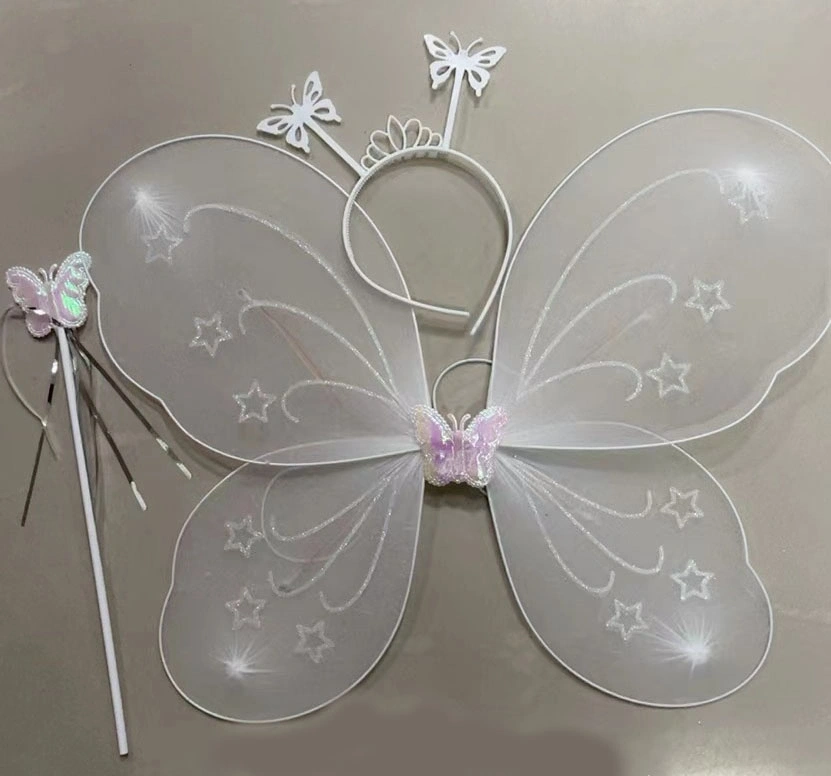 BEYAZ RENK KELEBEK KANADI TACI VE SOPASIÜrün ÖzellikleriYetişkin ve çocuk uyumludurTül malzemeden imal edilmiş parti kanadı 50 cm genişliğinde ve 37 cm yüksekliğindedir.Kanatların arka kısmında kollarınızdan geçirmeniz için lastikler yer alıyor.Uçlarında kelebek figürü yer alan taç, esnek yapıya sahiptir, kolaylıkla uyum ağlar.Kelebek Asası 30 cm yüksekliğindedir. Kurdelelerle süslü ve üst kısmında kelebek figürü bulunmaktadır.Paket İçeriği1 Adet kelebek kanadı1 Adet kelebek tacı1 Adet asa