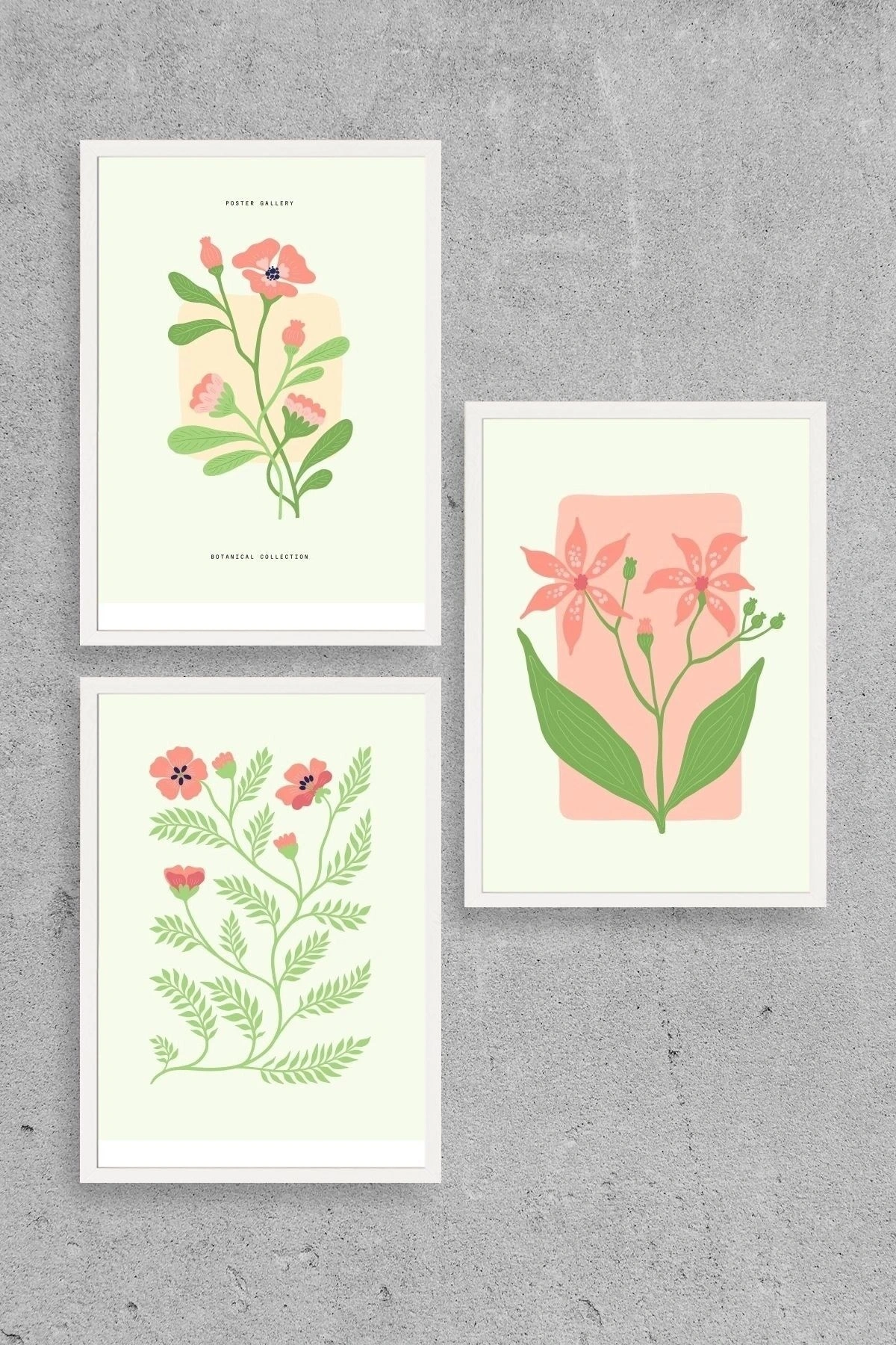 Botanik Üçlü Ahşap Çerçeveli Tablo 23 x 30