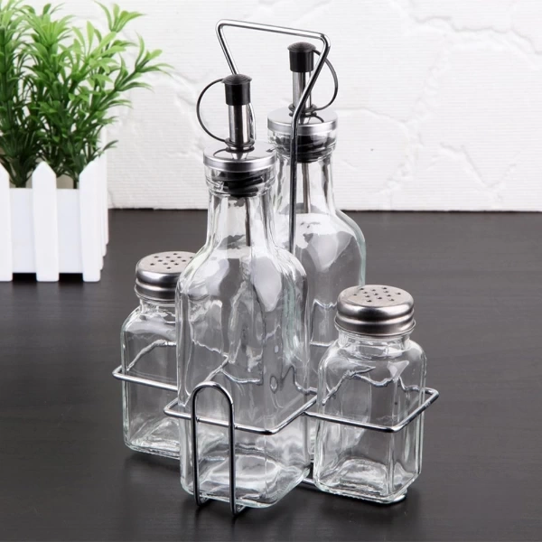 CAM YAĞLIK VE SİRKELİK SETİÜrün ÖzellikleriŞık ve kullanışlı tasarımıyla mutfakların vazgeçilmezi olan Cam Yağlık ve Sirkelik Seti, sofralarda ve yemek hazırlıklarında düzeni sağlamak için mükemmel bir seçimdir. Set içerisinde cam malzemeden üretilmiş yağlık ve sirkelik şişeleri yer alır. Paslanmaz metal kapakları sayesinde uzun süreli kullanım sunar ve dökülmeyi önleyen akıtmaz ağız yapısı sayesinde pratik bir kullanım sağlar.Cam şişeler, hem yağ hem de sirke için ideal kapasiteye sahiptir ve camın şeffaf yapısı sayesinde içerisindeki ürün miktarını kolayca görebilirsiniz. Sağlam metal taşıma standı, ürünlerin düzenli durmasını ve kolay taşınmasını sağlar. Şık tasarımı sayesinde mutfak tezgahlarında veya sofralarda dekoratif bir görünüm sunar.Bu set, hem ev kullanımı hem de restoran, kafe gibi profesyonel mutfaklar için idealdir. Temizlemesi kolay, hijyenik ve uzun ömürlü yapısıyla kullanıcıya konfor sağlar.Paket İçeriği1 adet Cam Yağlık Ve Sirkelik Seti