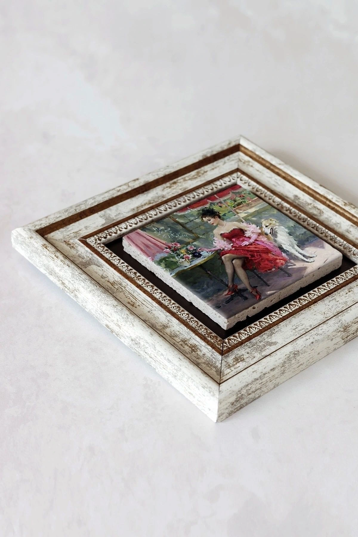 Ürün hakkında: Ölçüleri: 20 cm x 20 cm'dir. ; Kalınlık :2,5 cm'dir. ; Ürünün arka tarafında askı aparatı bulunmaktadır. ; Kullanılan çerçeveler yüksek kaliteli, eskitme görünümlü kompozit malzemeden üretilmiştir. ; Taşların yüzeyindeki baskı teknolojisi özel olup sağlığa hiçbir zararı yoktur. ; Kullanılan malzeme dağdan çıkan gerçek taş oldugu için yüzeyinde belli oranda gözenek bulunması ve renginin krem renginin tonlarını barındırması normaldir kimyasal malzeme teması Yüzey deformasyona maruz kalabilir. ; Nemli bezle silinerek temizlenebilir. ; Isıya, suya ve neme dayanıklıdır. ; Kutu içeriği: Orijinal kutu içerisinde 1 adet çerçeveli taş duvar dekoru. ; 1 adet çerçeveli duvar dekoru ağırlığı: 250 gr çerçeve askısı ile duvara montajı yapılabilir.;