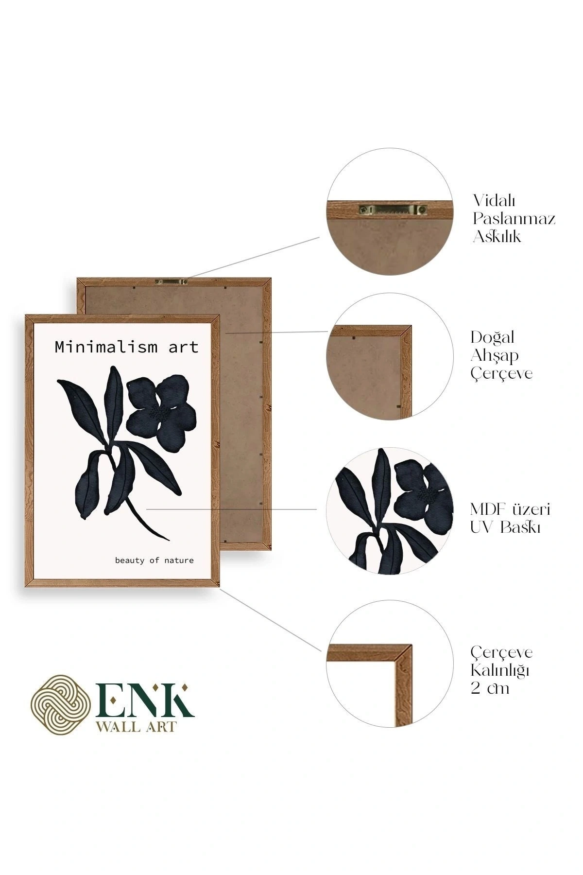 Tablolarımız gerçek ahşap çerçevelidir, çerçeve görünümlü değildir. ; ENK Wall Art Olarak Ahşap Çerçeveli Tablolar Üretiyoruz. ; Tablolarımız tek parça, 3 Parça, 5 Parça ve daha çok kategoride tasarımcılarımız tarafından ev ve ofisleriniz duvarları süslemek için tasarlanmaktadır. ; Ahşap Çerçeveli Duvar Tabloları ile yaşam alanlarınıza yepyeni bir görünüm kazandırın. ; Yıllarca dayanacağından emin olduğumuz sağlam çerçevelere sahip yüksek kaliteli ahşaptan üretilmiştir. ; İster bir köşeyi süslemek isteyin, ister evinizi yenilemek , bu ahşap tablolar herhangi bir yaşam alanına stil ve işlev getirecektir. ; Duvara kolay bir şekilde monte edilir. ; Uzun ömürlü kullanım için sağlam ahşap çerçeveden yapılmış, dayanıklı ve güçlü. ; Duvara monte edilebilir tasarımı, yaşam alanlarında veya yatak odalarında duvara kolayca asılmasını sağlar. ; Pürüzsüz üst yüzeyi temiz kalmayı kolaylaştırır. ; Herhangi bir stile uyacak şekilde çeşitli renklerde gelir. ; Kolay yeniden düzenleme için hafif ve portatif. ; Küçük oturma odaları veya dar alanlar için mükemmel boyut. ; Eve taşınma hediyesi olarak idealdir. ; Herhangi bir evin dekorunu süslemek için harika bir yol. ; Herhangi bir modern veya çağdaş iç tasarıma mükemmel bir katkı. ; Tablo içi 3 mm mdf (ahşap) malzeme üzeri uv baskıdır. ; Renkler canlı ve solma yapmaz. ; Kırılma, bükülme ve çizilmeye karşı dayanıklıdır.;