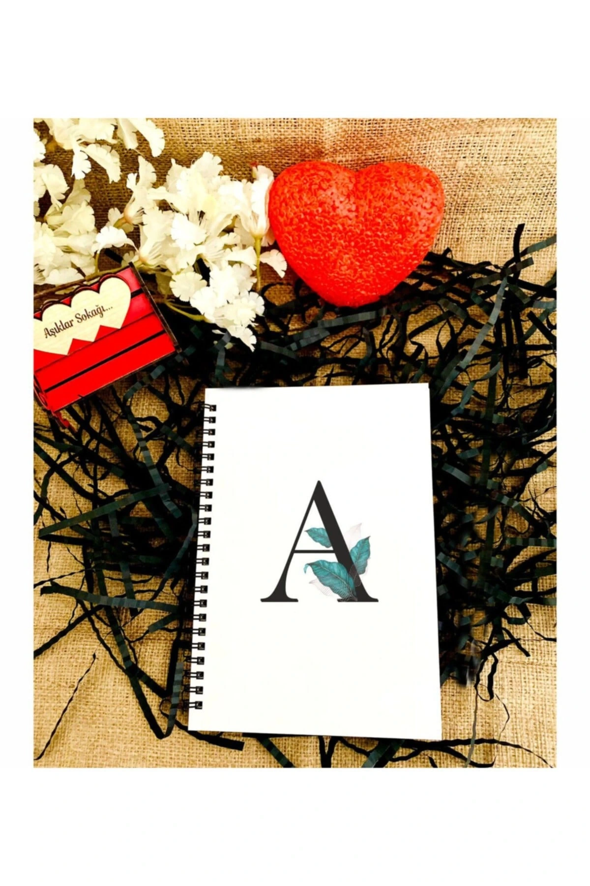 Çiçek Harf Baskılı Ahşap Defter Kalem Seti - Beyaz
