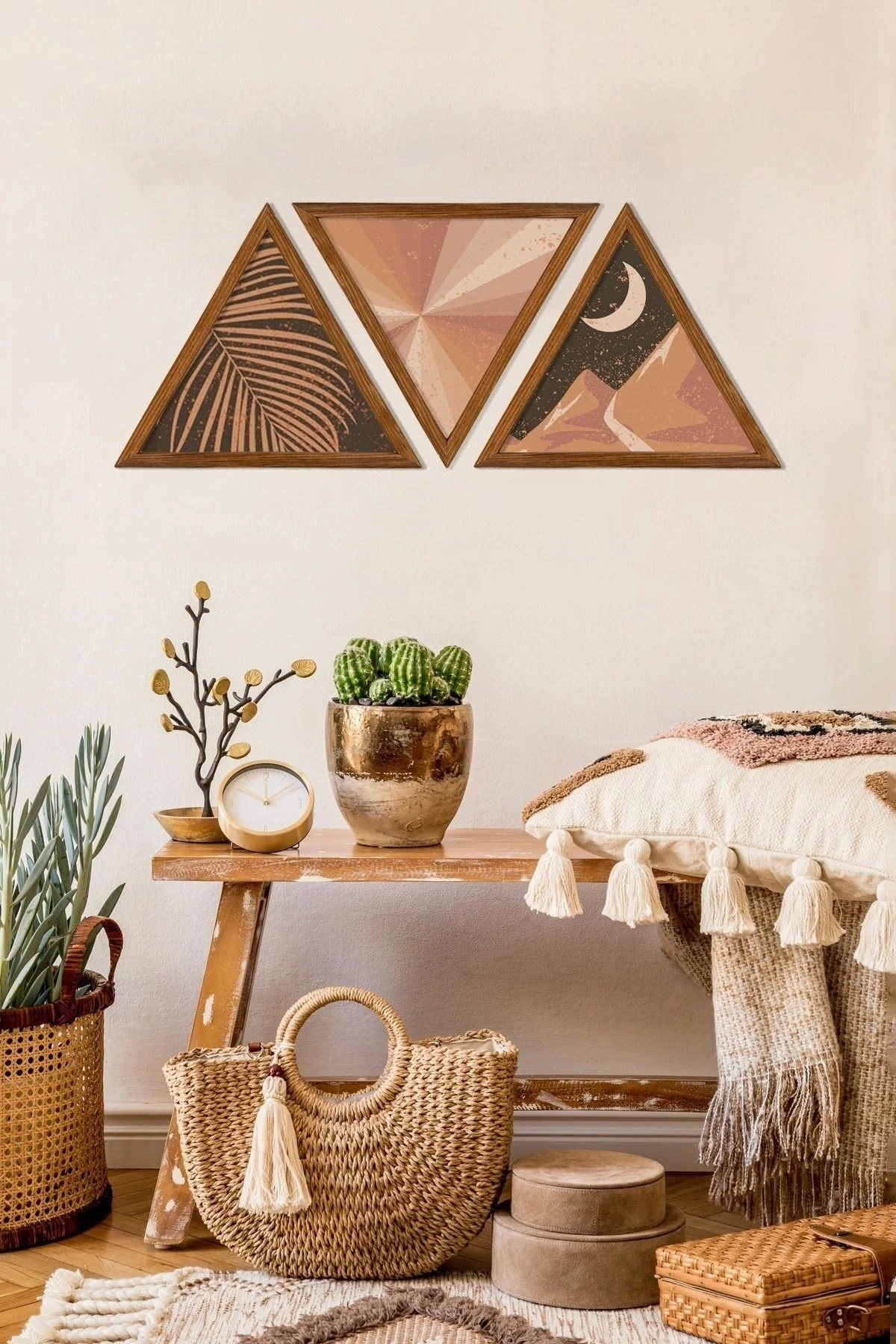 Dekoratif Üçgen Çerçeveli Ahşap Tablo Set 35 x 40