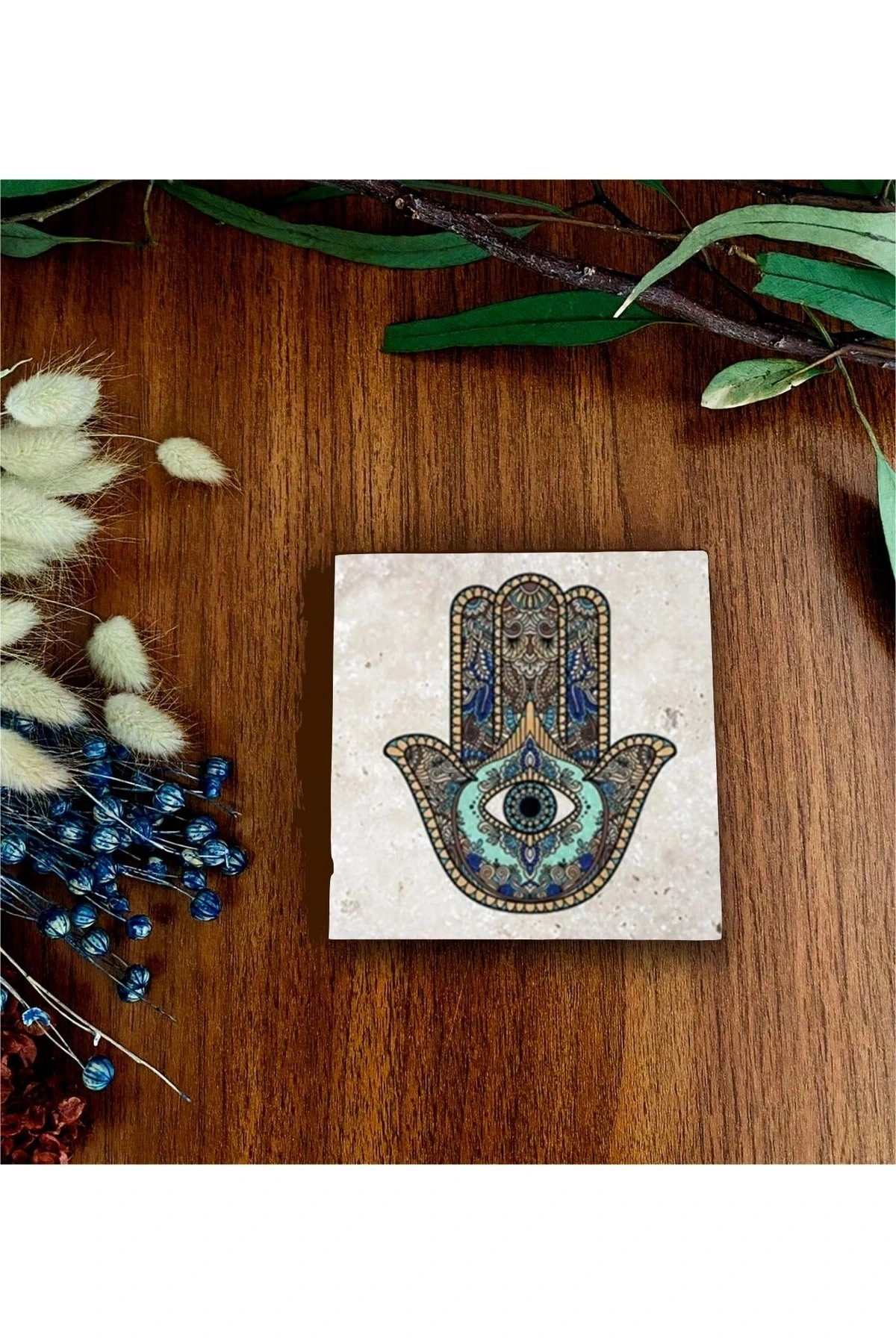 Doğaltaş Baskılı Bardak Altlığı Tekli - Fatıma'nın Eli