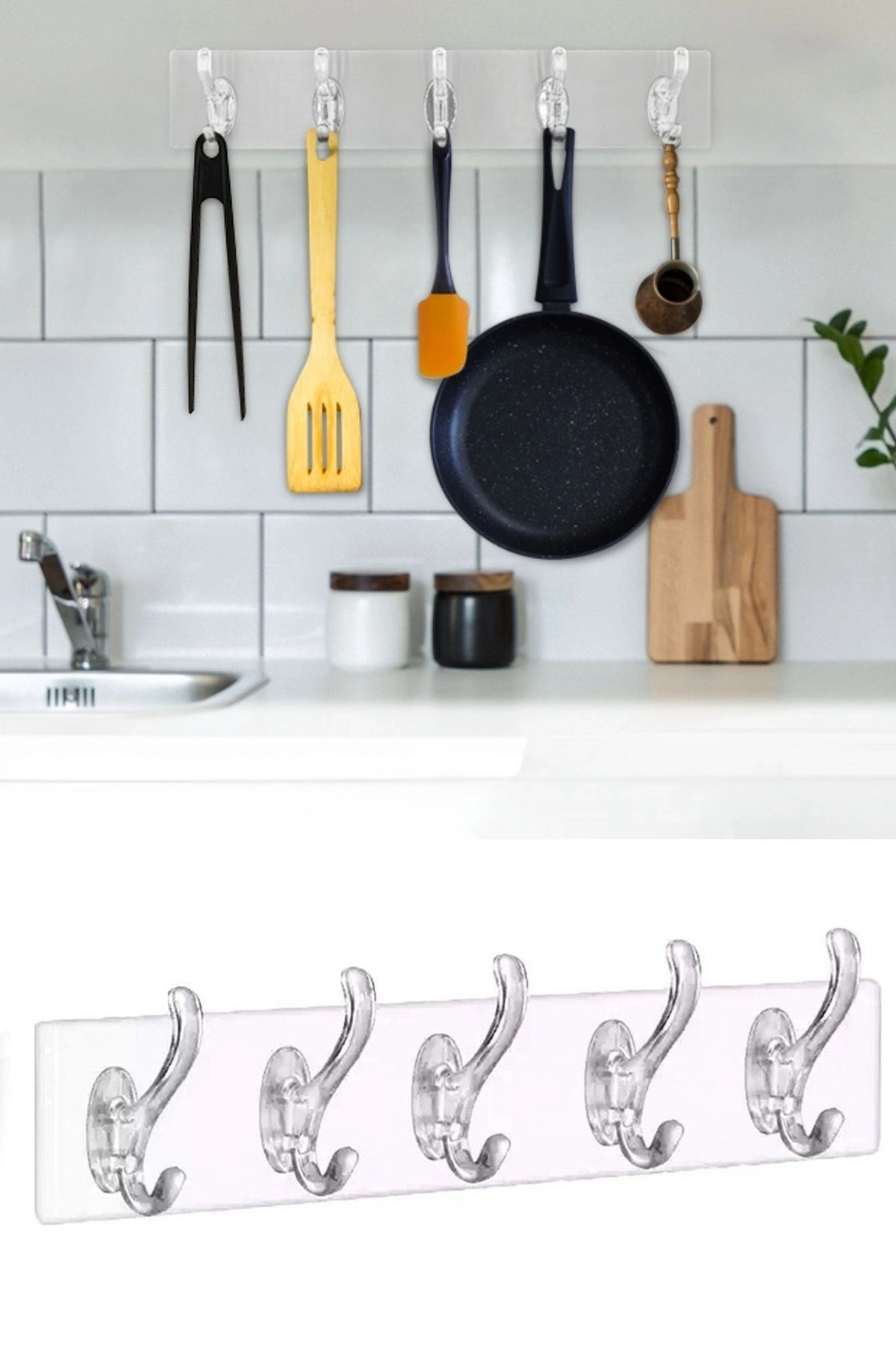 Çoklu Kullanım Alanı: Bu askılık seti, banyo ve mutfak gibi farklı alanlarda çok yönlü kullanım imkanı sunar. Havluları, süngerleri, fırçaları, spatulaları, kepçeleri ve diğer mutfak/banyo gereçlerini düzenli bir şekilde asabilirsiniz. Eşyalarınızı kolayca erişilebilir bir şekilde saklamanıza yardımcı olur.