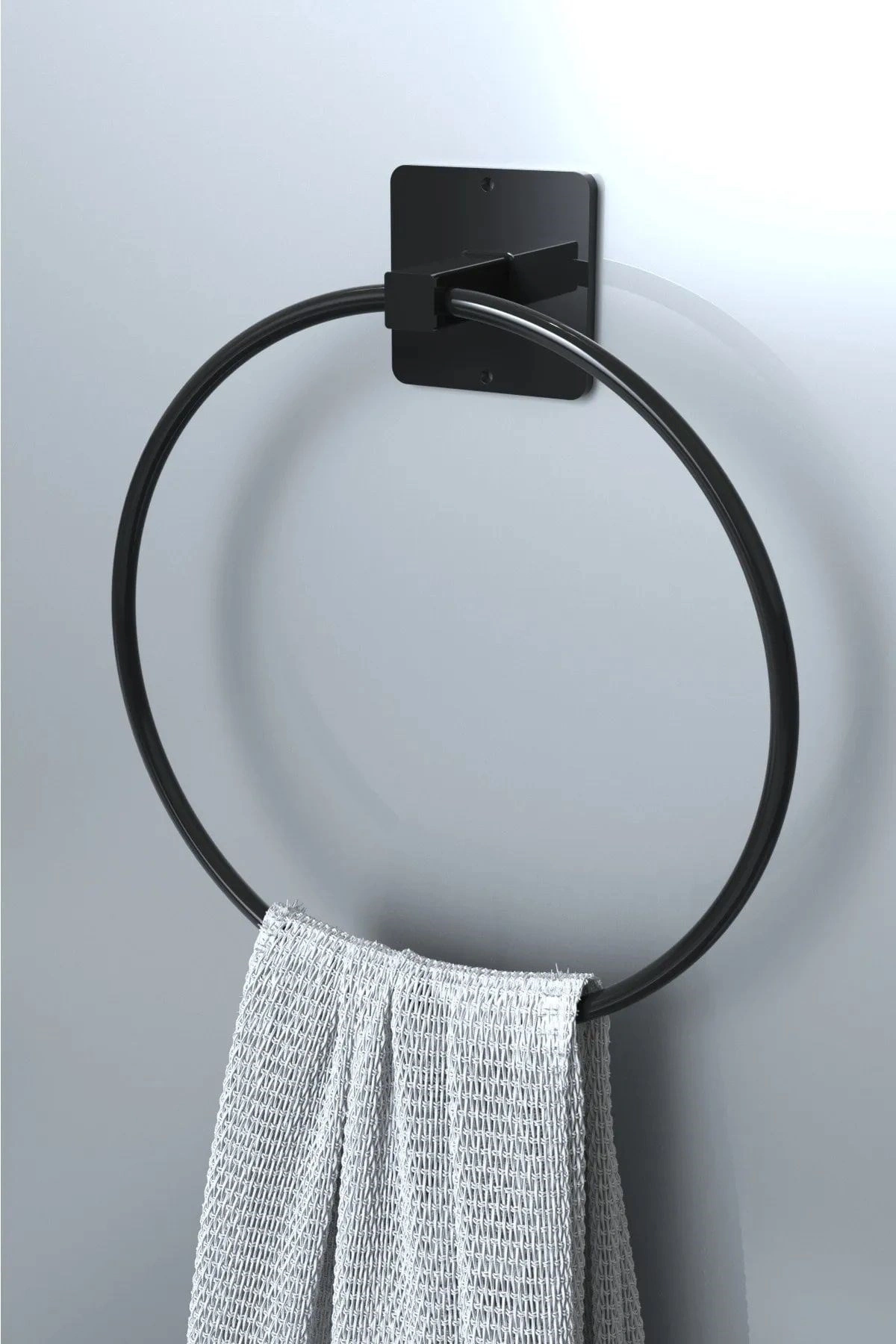 Kendiliğinden yapışkanlı siyah paslanmaz metal yuvarlak havluluk, şık tasarımıyla dekorunuza estetik bir değer katar ve havlu saklama konusunda pratik bir çözüm sunar. Paslanmaz metal malzemesiyle uzun ömürlü kullanım sağlar ve kullanıcılarına kullanım kolaylığı sunar.