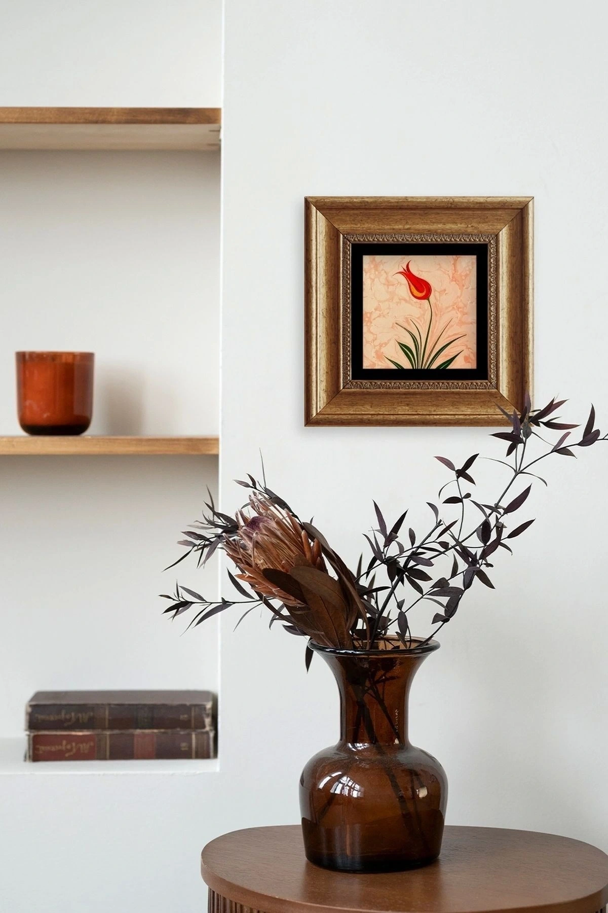 Ebru Lale Çerçeveli Taş Tablo 20 cm
