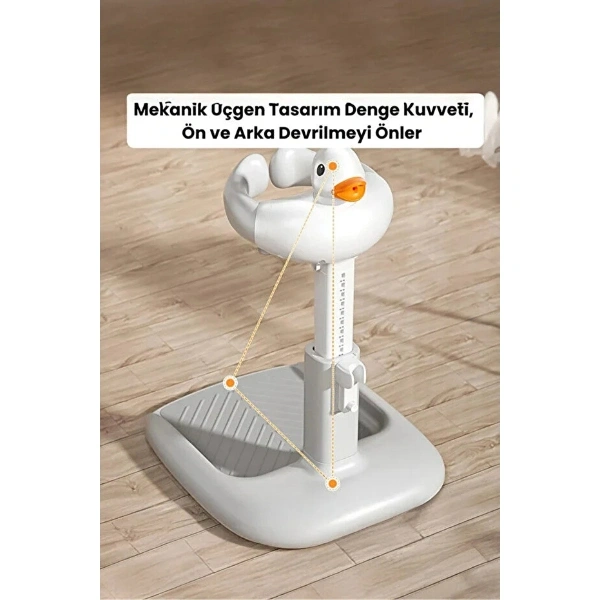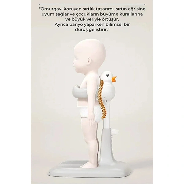 ERGONOMİK ÖRDEKLİ BEBEK BANYO VE YIKAMA YARDIMCISIÜrün ÖzellikleriErgonomik Ördekli Bebek Banyo Yıkama Yardımcısı, ebeveynlerin en büyük yardımcısı ve bebeklerin banyo saatlerinin yeni eğlencesi olarak tasarlandı. Yenidoğan döneminden itibaren güvenle kullanabileceğiniz bu ürün, 50-63 cm ayarlanabilir boy opsiyonu sayesinde farklı boydaki küvet ve lavabolara mükemmel uyum sağlar. Bel ve sırt ağrılarını önlemek amacıyla tasarlanan yükseklik ayarı, eğilmenize gerek kalmadan bebeğinizi en konforlu pozisyonda yıkamanıza olanak tanır. Bebeğinizin vücut hatlarına tam uyum sağlayan ergonomik yapısı, onu nazikçe kavrar ve kaymasını engellerken, ekstra desteklenmiş baş ve boyun bölgesi maksimum güvenlik sunar. Sempatik ördek tasarımı ve canlı renkleri, bebeklerin banyo korkusunu yenmelerine yardımcı olarak bu süreci keyifli bir oyun vaktine dönüştürür. BPA içermeyen, su tutmayan ve bakteri oluşumunu önleyen cilt dostu malzemesi, bebeğinizin hassas cildini tahriş etmez. Hafif ve kompakt yapısı sayesinde banyonuzda yer kaplamaz, seyahatlerde kolayca taşınabilir. Islak zeminlerde maksimum tutuş sağlayan kaymaz tabanı ile güvenlikten ödün vermeyen bu bebek banyo desteği, saniyeler içinde kurulur ve sadece suyla durulanarak pratik bir şekilde temizlenebilir.Ürün Teknik ÖzellikleriÖzellikAçıklamaÜrün AdıErgonomik Ördekli Bebek Banyo Yıkama YardımcısıYükseklik Ayarı50 cm - 63 cm (Teleskopik Ayarlanabilir)Genişlik / Derinlik26-35 cm Destek Alanı / 42 cm Taban GenişliğiMalzemeYüksek Kaliteli, BPA İçermeyen, Cilt Dostu MateryalKullanım AralığıYenidoğandan İtibaren UygunGüvenlikKaymaz Taban ve Ergonomik Vücut KavramaTasarımIşıklı/Sempatik Ördek Figürlü KonseptPaket İçeriği1 Adet Ayarlanabilir Ergonomik Ördekli Bebek Banyo Yıkama Standı