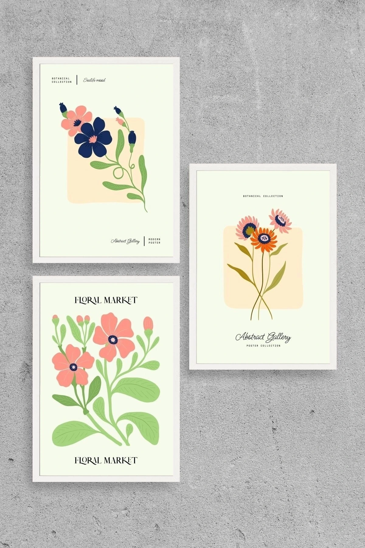 Flower Market Üçlü Ahşap Çerçeveli Tablo 40 x 60