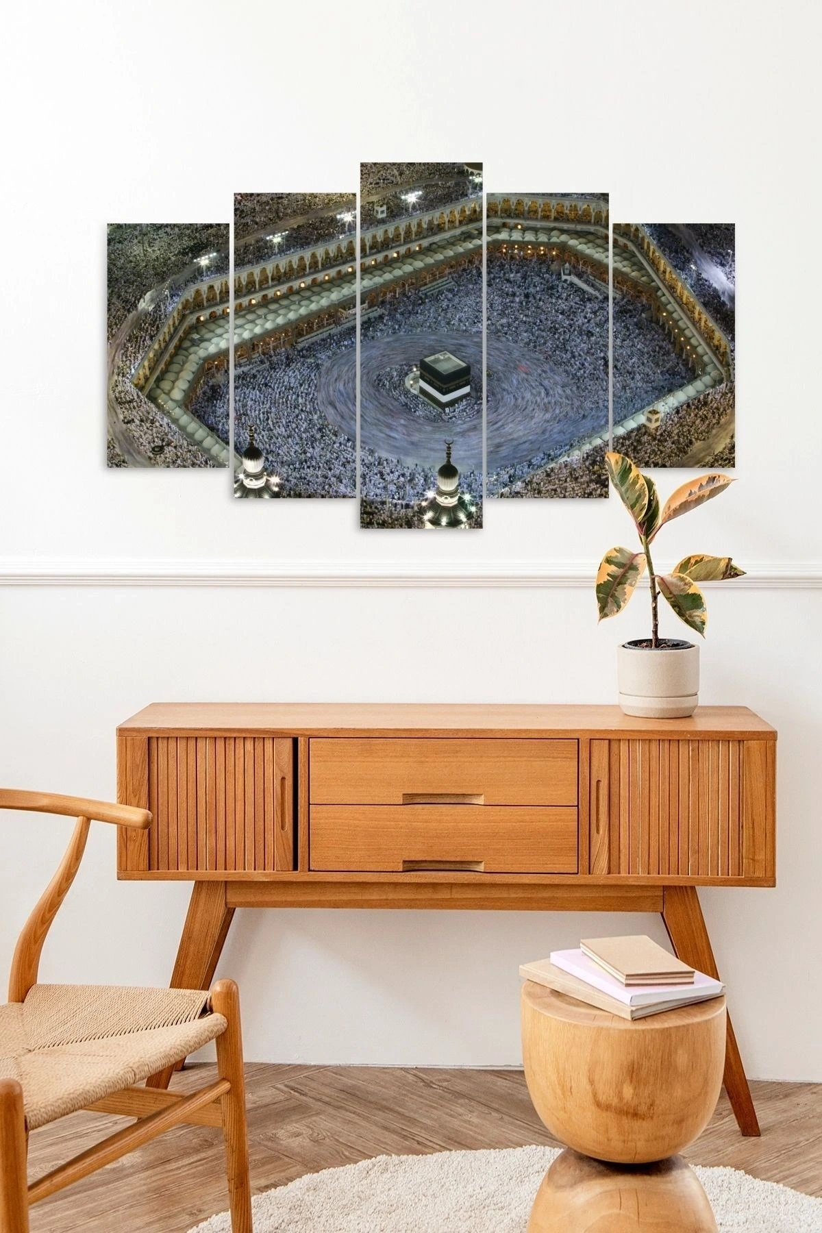 - Modern tasarımıyla evinizin dekorasyonuna şıklık katan 5 parçalı MDF tablo, Kabe manzarasını evinize taşıyor; - Kaliteli MDF malzemesi sayesinde uzun ömürlü kullanım sunar ve dayanıklılığı ile ön plana çıkar; - Ahşap yapısı, doğal dokusuyla mekanınıza sıcaklık ve estetik bir görünüm kazandırır; - Modern stil sahibi olan bu tablo, çağdaş dekorasyon anlayışınıza uyum sağlayarak evinizin atmosferini zenginleştirir;