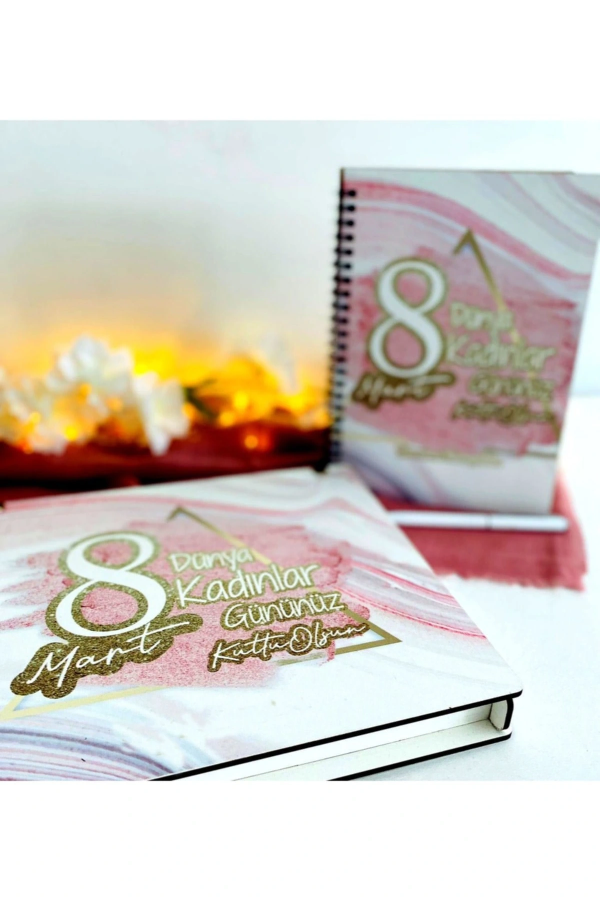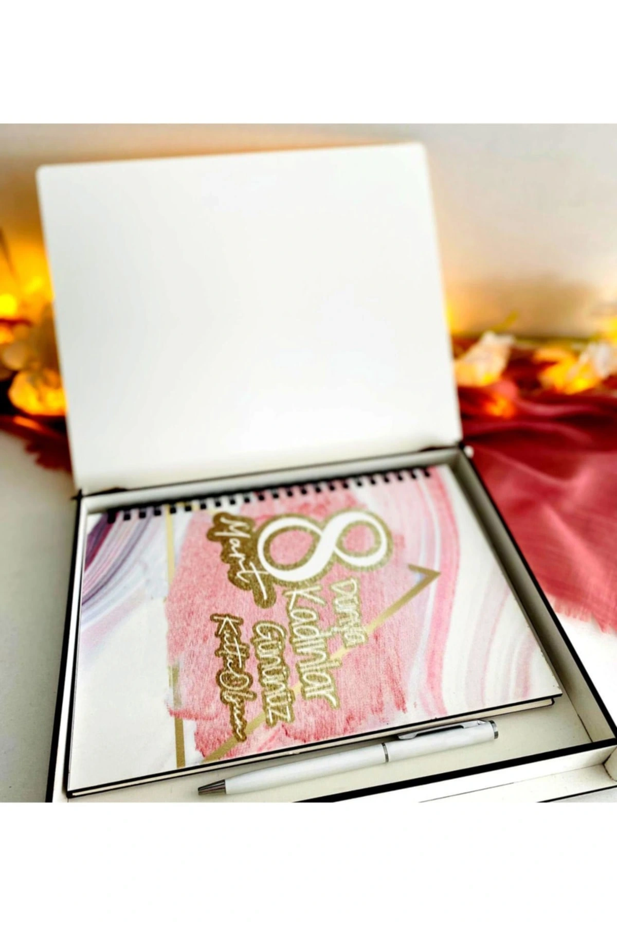 Kadınlar Günü Ahşap Kutulu Ahşap Defter Kalem Seti - Pmbe2
