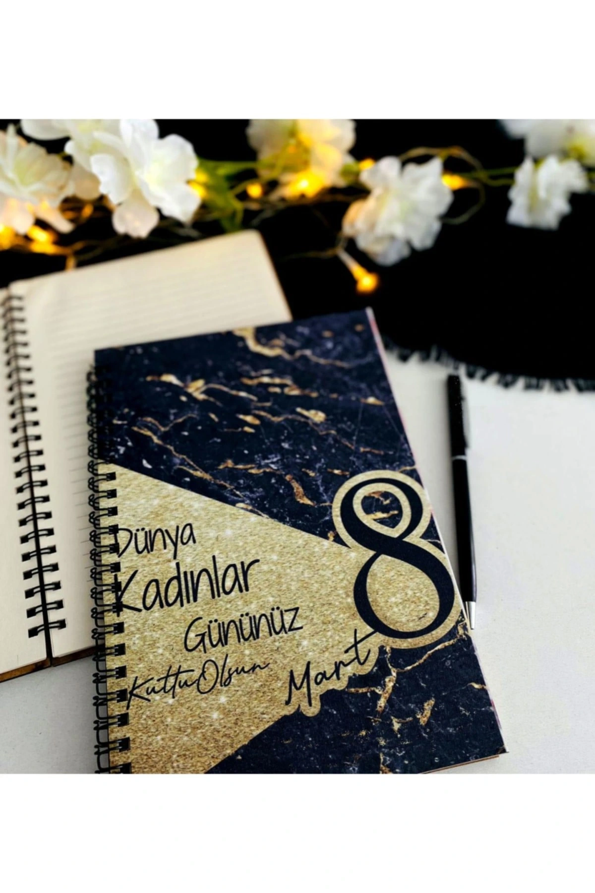 Kadınlar Günü Siyah Gold Defter Kalem Seti