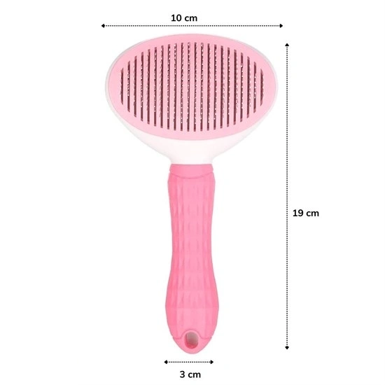 Kedi Köpek Tüy Toplayıcı Kendini Temizleyebilen Ergonomik Saplı Evcil Hayvan Tarağı Pembe (5365)