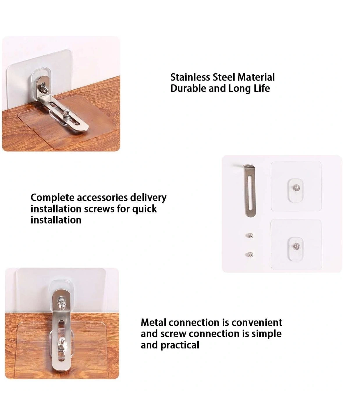 MOBİLYA SABİTLEME APARATIÜrün ÖzellikleriMobilya sabitleme aparatı, devrilme ve düşme riski olan eşyalarınızı güvenli bir şekilde sabitlemek için tasarlanmıştır. Nem ve su geçirmez özelliğe sahip bu aparat, yüksek viskoziteli yapışkanları sayesinde zemine güçlü bir şekilde tutunur ve dayanıklılık sağlar. Kolay kurulumu ile pratik bir kullanım sunar. Yapıştırılacak alanı bir bezle temizledikten sonra, yapışkan yüzeyleri ayırarak duvara ve sabitlenecek eşyaya kolayca monte edebilirsiniz. Sabitleyici kilit mekanizması, eşyalarınızın güvenliğini artırır.Deprem ve çocuk koruması sağlayan bu aparat, yüksek kaliteli metal tokalar ve güçlü yapışkan bantlardan oluşur. Kurulumdan sonra sağlam bir sabitleme sağlar ve uzun yıllar boyunca kullanılabilir. Gardırop, kitaplık, TV dolabı, şifonyer gibi mobilyalar için geniş bir kullanım alanına sahiptir.Paket İçeriği1 adet sabitleme aparatı seti (2 adet vidalı yapışkan + 1 adet metal parça)