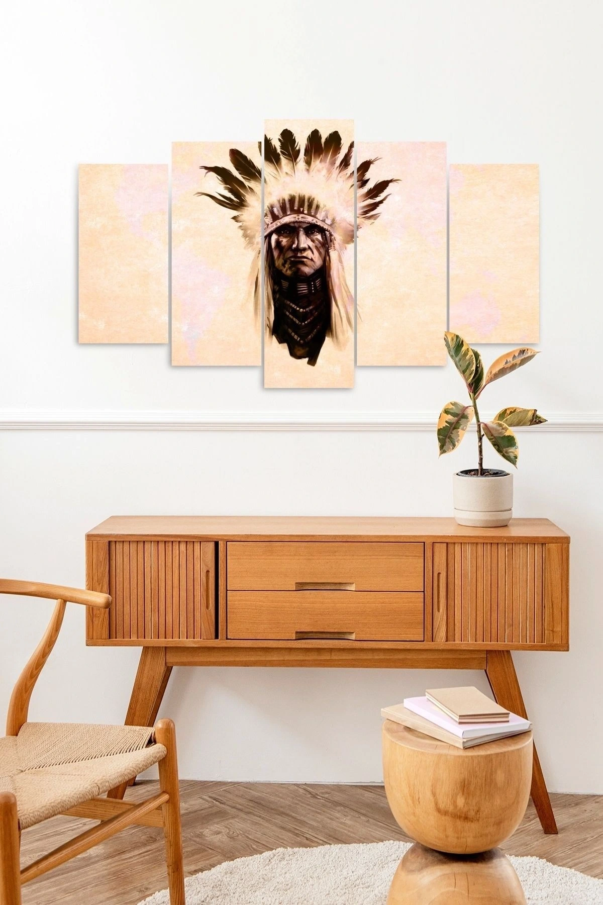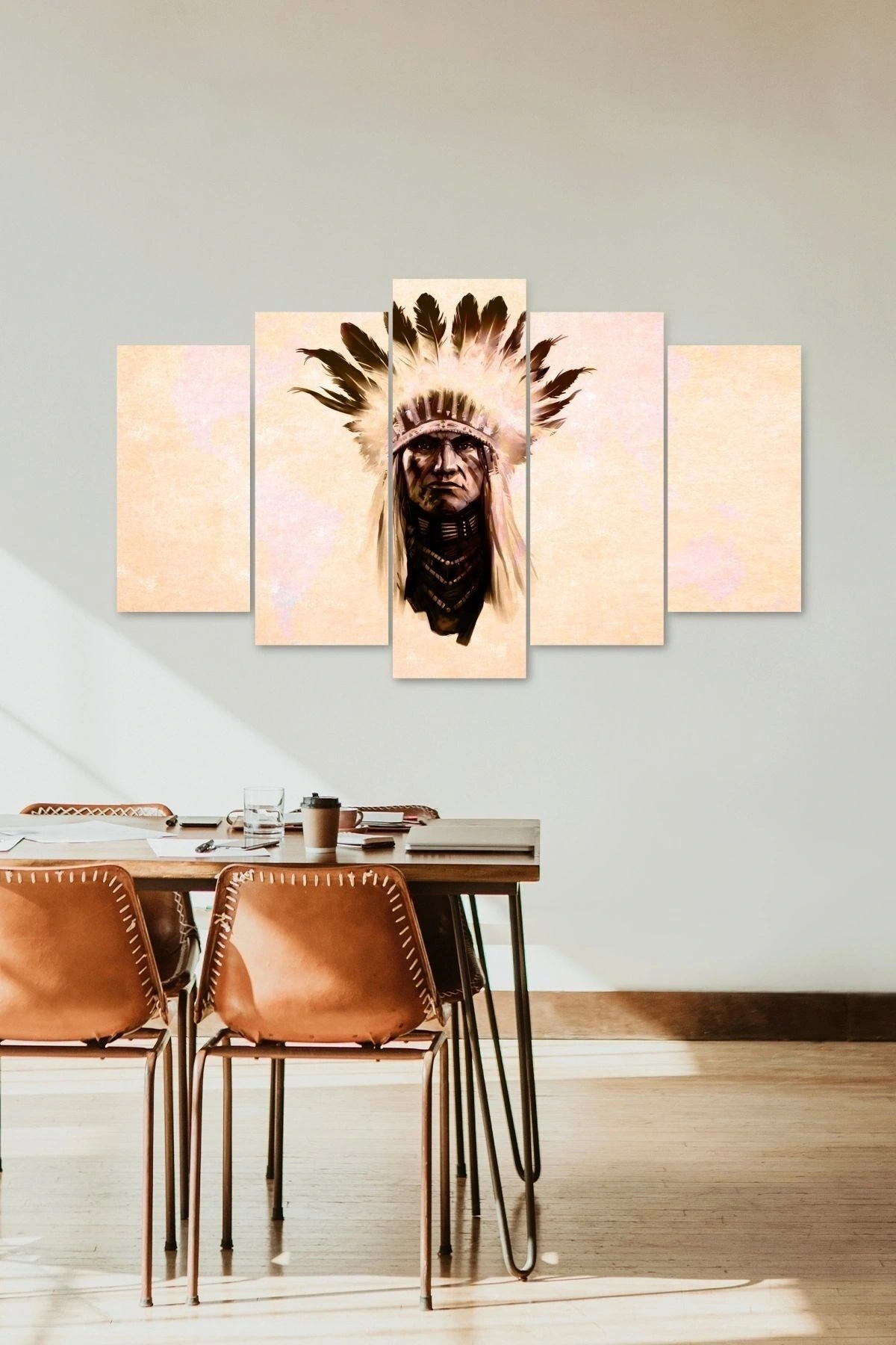 Kızılderili Manzara 5 Parçalı Mdf Tablo 60 x 100