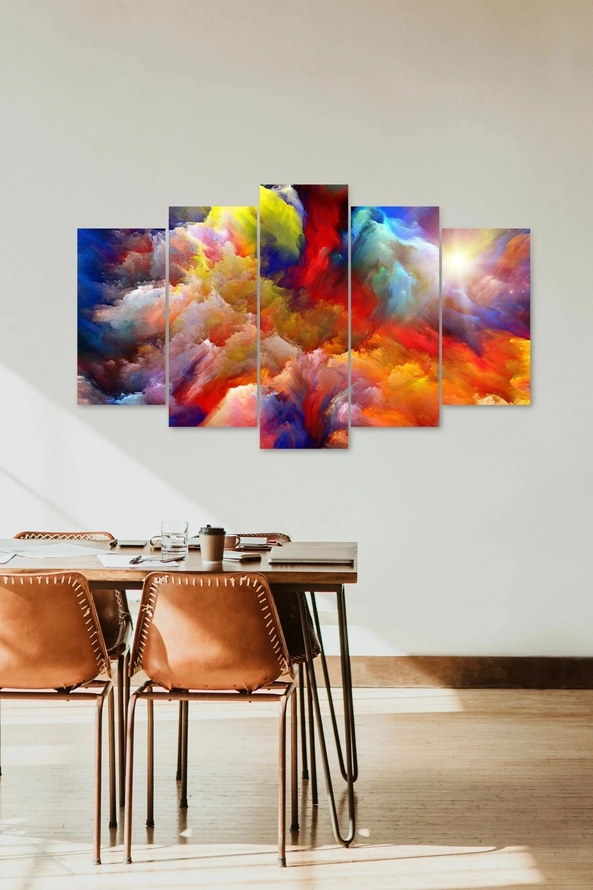 5 Parçalı Mdf Tablo 3 mm mdf üzerine kaliteli Uv baskı yapılarak üretilmiştir. ; toplam tablo ebatı 60 cm ye 100 cm dir. ; Göndereceğimiz çift taraflı bant ile duvarlarınıza yapıştırabilirsiniz.;