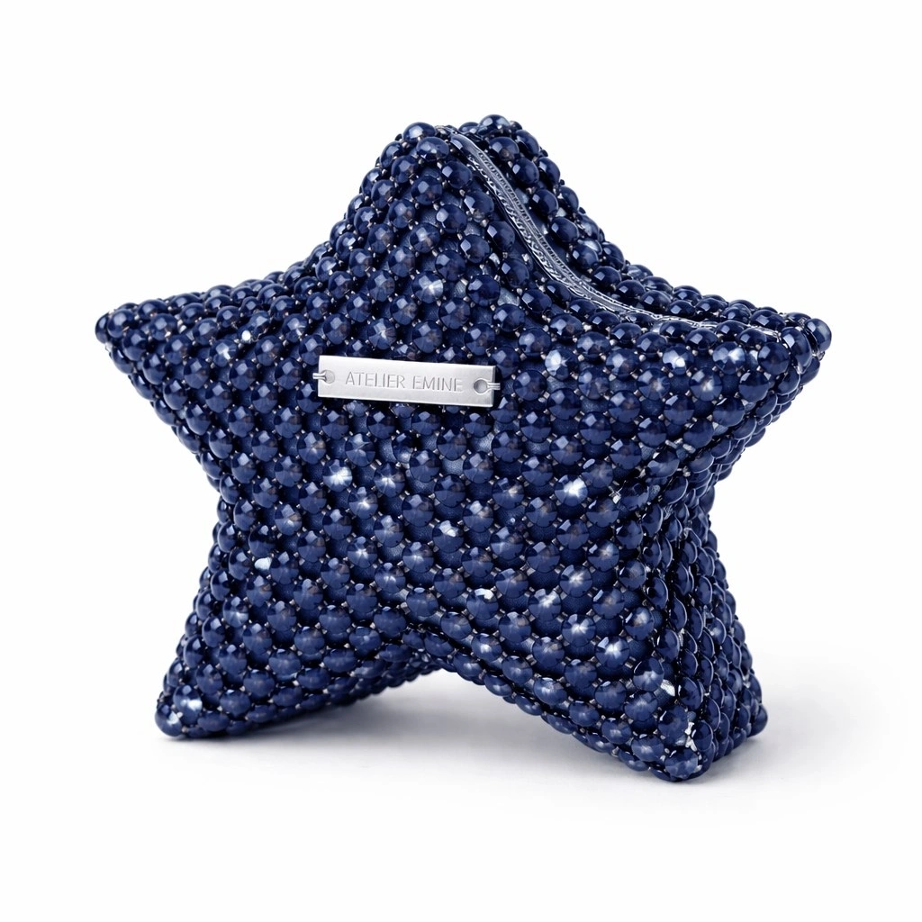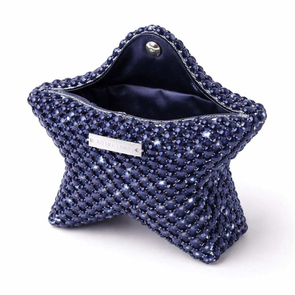 Atelier Emine’in Crystal Gelato Couture serisine ait Mielo Profondo, üç boyutlu yıldız formu esas alınarak tasarlanmış; 8 mm optik sınıfı kristal boncukların yüksek dayanımlı misina ile tek tek örülmesiyle üretilmiş, heykelsi nitelik taşıyan premium mini clutch modelidir.