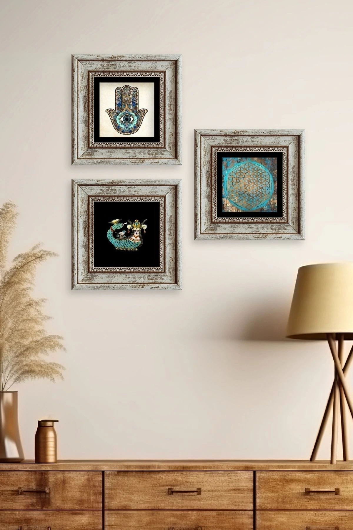 Mistik 3 lü Set Çerçeveli Taş Tablo 20 cm