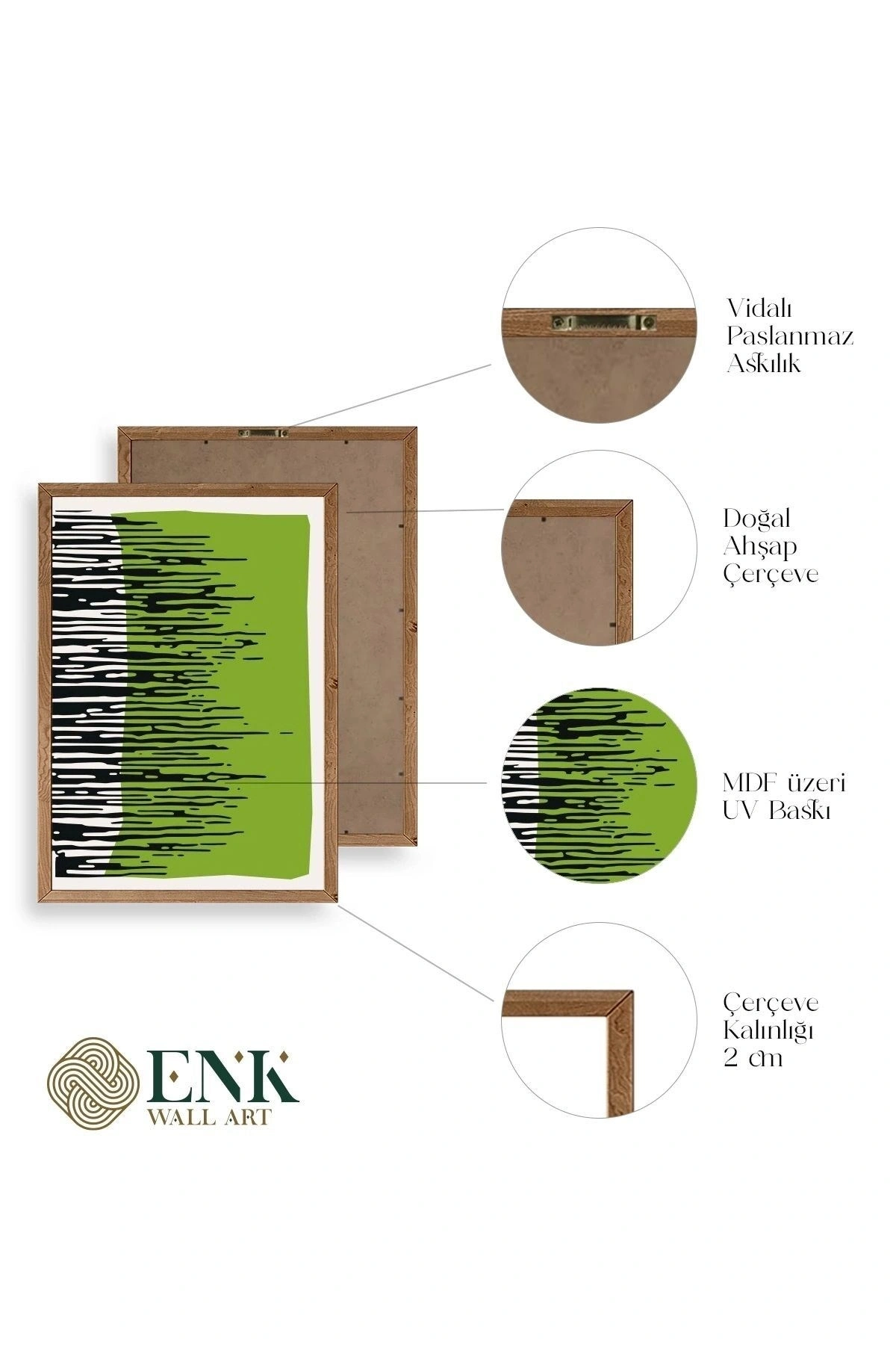 Tablolarımız gerçek ahşap çerçevelidir, çerçeve görünümlü değildir. ; ENK Wall Art Olarak Ahşap Çerçeveli Tablolar Üretiyoruz. ; Tablolarımız tek parça, 3 Parça, 5 Parça ve daha çok kategoride tasarımcılarımız tarafından ev ve ofisleriniz duvarları süslemek için tasarlanmaktadır. ; Ahşap Çerçeveli Duvar Tabloları ile yaşam alanlarınıza yepyeni bir görünüm kazandırın. ; Yıllarca dayanacağından emin olduğumuz sağlam çerçevelere sahip yüksek kaliteli ahşaptan üretilmiştir. ; İster bir köşeyi süslemek isteyin, ister evinizi yenilemek , bu ahşap tablolar herhangi bir yaşam alanına stil ve işlev getirecektir. ; Duvara kolay bir şekilde monte edilir. ; Uzun ömürlü kullanım için sağlam ahşap çerçeveden yapılmış, dayanıklı ve güçlü. ; Duvara monte edilebilir tasarımı, yaşam alanlarında veya yatak odalarında duvara kolayca asılmasını sağlar. ; Pürüzsüz üst yüzeyi temiz kalmayı kolaylaştırır. ; Herhangi bir stile uyacak şekilde çeşitli renklerde gelir. ; Kolay yeniden düzenleme için hafif ve portatif. ; Küçük oturma odaları veya dar alanlar için mükemmel boyut. ; Eve taşınma hediyesi olarak idealdir. ; Herhangi bir evin dekorunu süslemek için harika bir yol. ; Herhangi bir modern veya çağdaş iç tasarıma mükemmel bir katkı. ; Tablo içi 3 mm mdf (ahşap) malzeme üzeri uv baskıdır. ; Renkler canlı ve solma yapmaz. ; Kırılma, bükülme ve çizilmeye karşı dayanıklıdır.;
