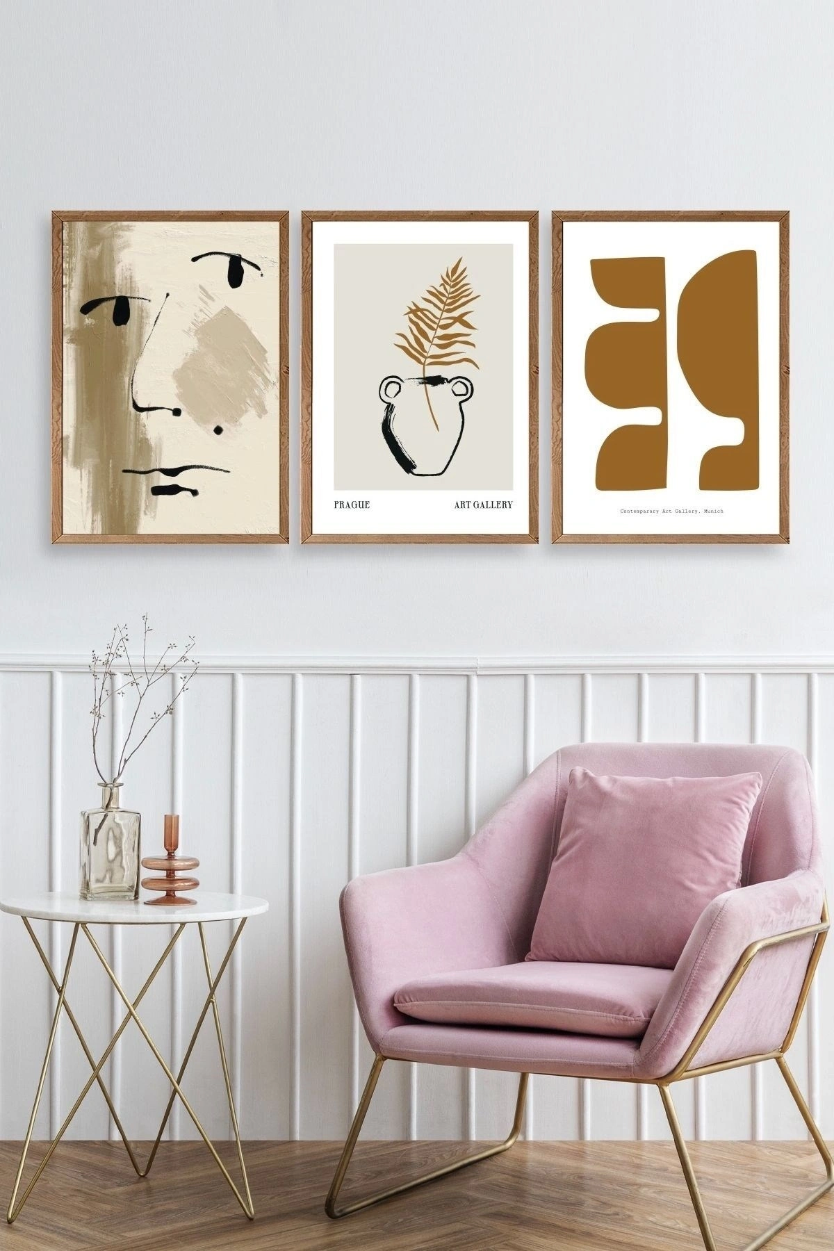 Modern Üçlü Ahşap Çerçeveli Tablo 23 x 30