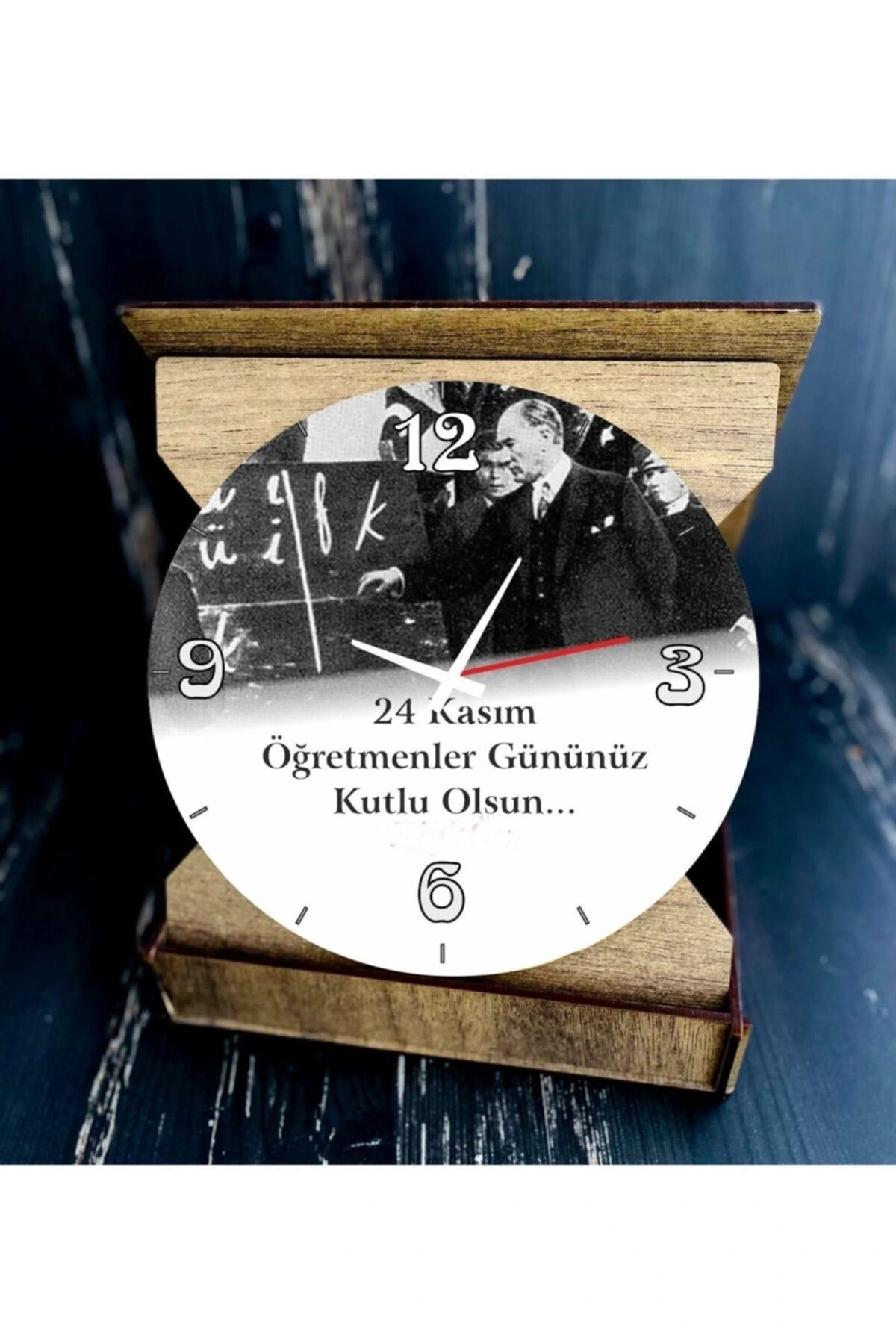 Atatürk'ün karikatürize edilmiş portresini taşıyan bu özel tasarım, öğretmeninize olan sevginizi ve saygınızı ifade etmenin zarif bir yoludur.; Dayanıklı ahşap malzeme kullanımı sayesinde uzun yıllar boyunca ilk günkü gibi sağlam ve estetik kalır.; Masa üzerinde yer alan bu saat, hem fonksiyonel hem de dekoratif bir aksesuar olarak dikkat çeker.; Öğretmenler günü hediyesi olarak tercih edebileceğiniz bu anlamlı ürün, öğretmeninizin çalışma alanına şık bir dokunuş katacaktır.; Atatürk'ün karikatürize edilmiş portresi, öğretmeninize olan saygınızı ve sevginizi yansıtırken aynı zamanda dekoratif bir unsur olarak da öne çıkar.;