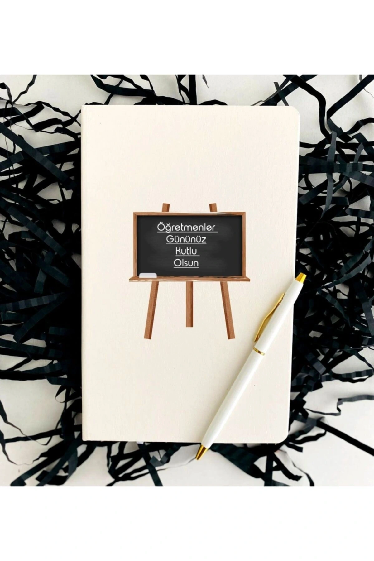 Öğretmenler Günü Okul Tahtası Model Defter Kalem Seti - Beyaz
