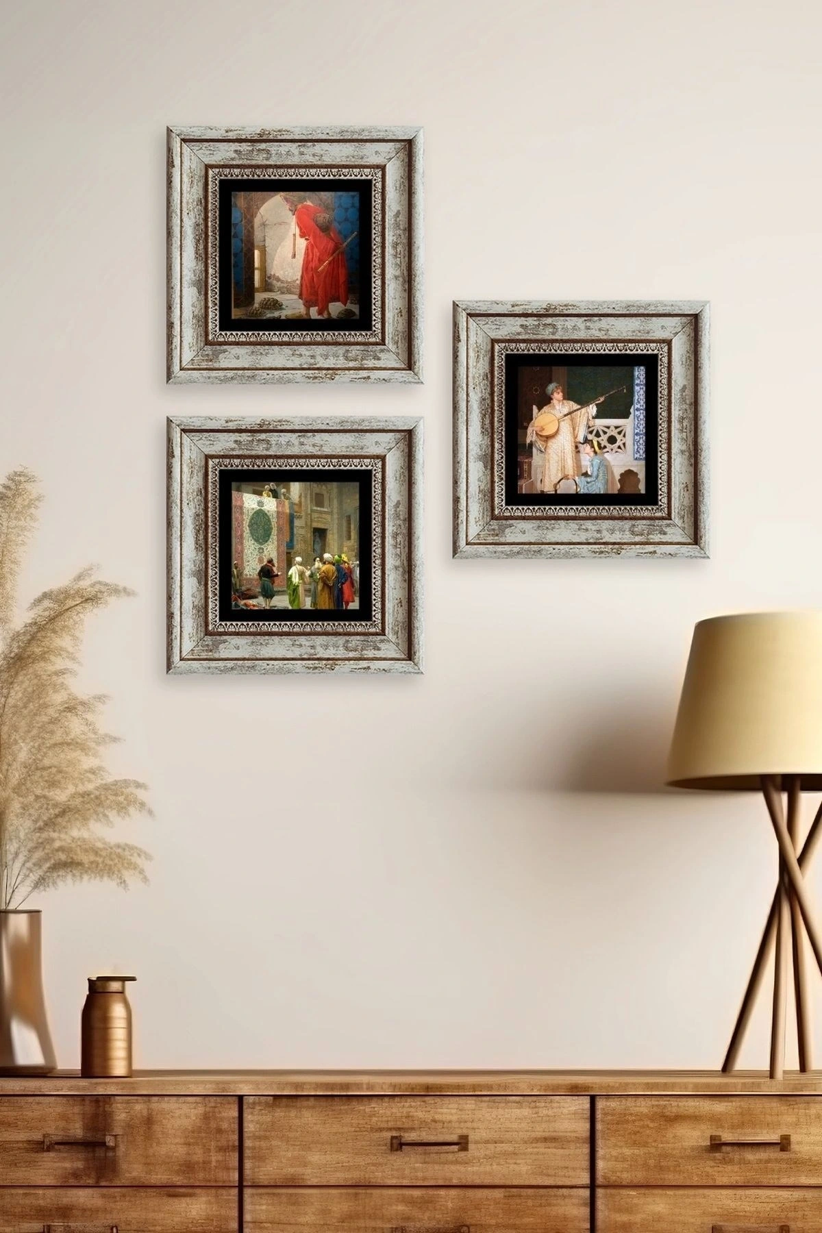 Osman Hamdi Bey 3 lü Set Çerçeveli Taş Tablo 20 cm