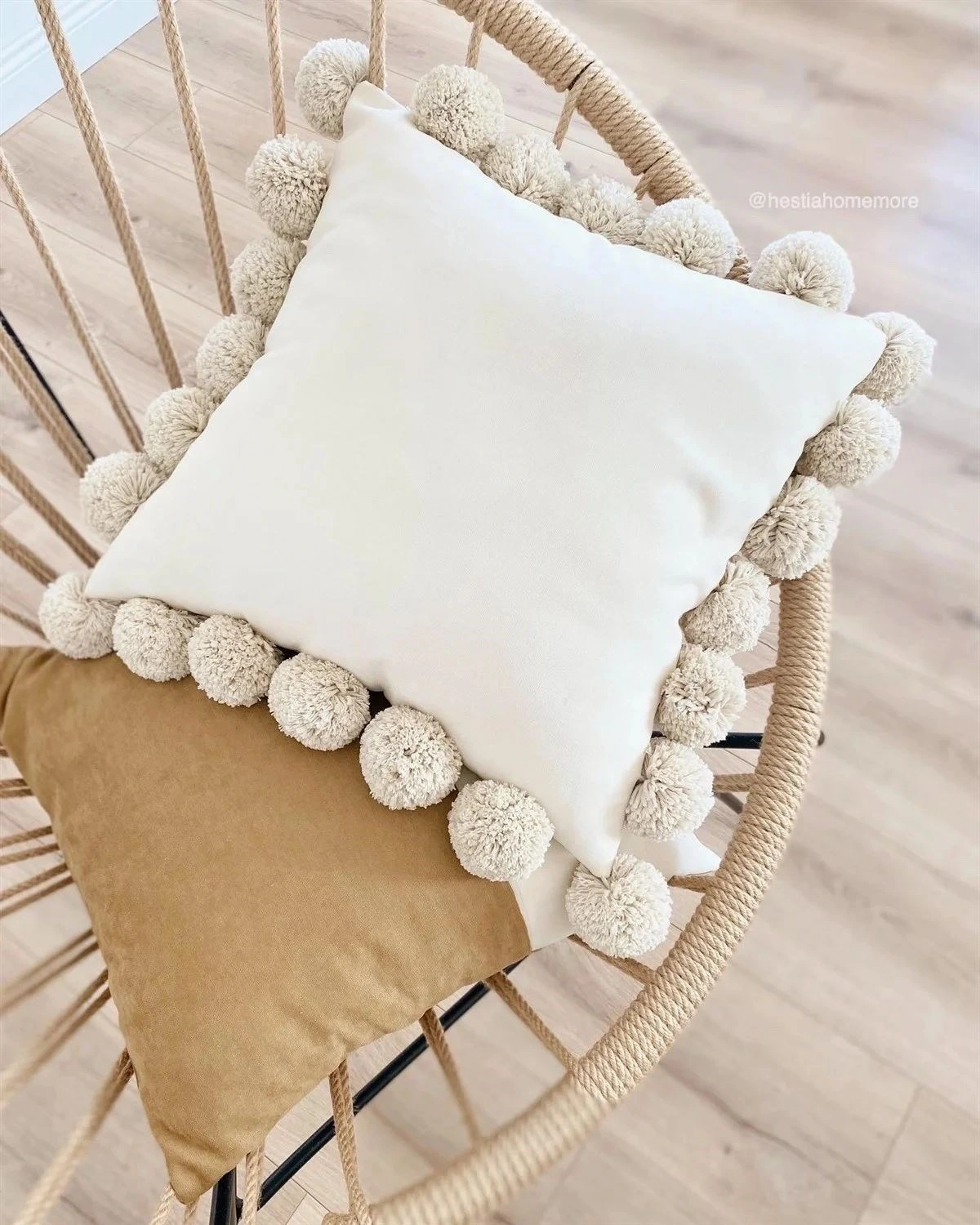 - Tek parça olarak sunulan ponponlu kırlent kılıfı, mekanınıza şık ve modern bir dokunuş katıyor.; - Düz tasarımıyla sade ve zarif bir görünüm sunan bu kırlent kılıfı, dekorasyonunuzda kolayca uyum sağlar.; - Kare şekliyle standart kırlentlerinize mükemmel uyum sağlayarak, estetik bir bütünlük oluşturur.; - Polyester materyali sayesinde dayanıklılık ve uzun ömürlü kullanım vaat eder.; - Türkiye'de üretilmiş olup, yerel üretim desteklenerek ekonomik katkıda bulunulur.; - Makine üretimi ile standartlara uygun olarak üretilmiş olup, kalite kontrol süreçlerinden geçmiştir.;