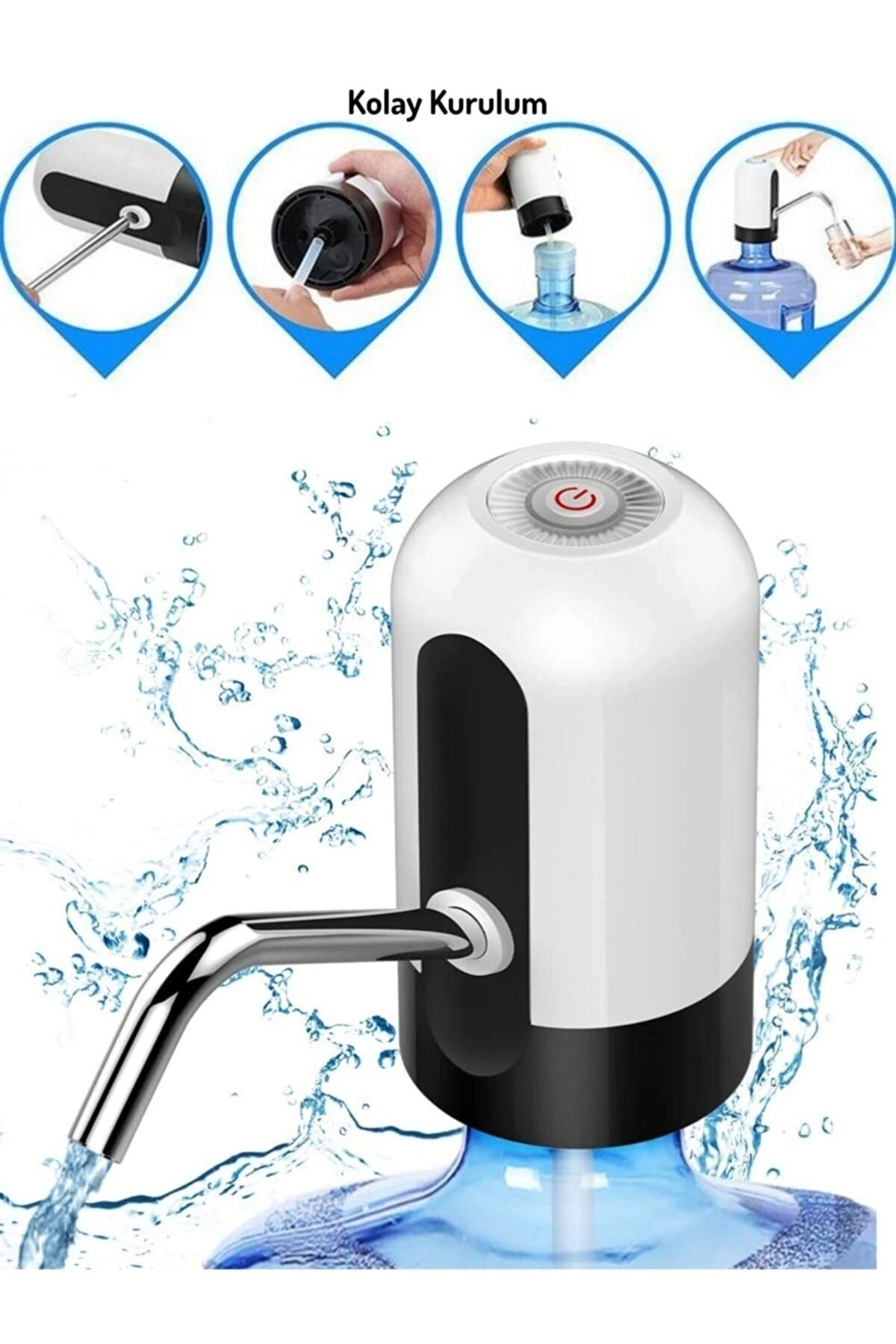 Şarj edilebilir özelliği sayesinde, elektrik prizine ihtiyaç duymadan istediğiniz her yerde suyunuzu kolayca pompalayabilirsiniz; Otomatik damacana pompası, suyun damacanaya akışını kontrol ederek suyun eşit ve düzenli bir şekilde dağılmasını sağlar; Şarjlı yapısı ile taşınabilirliği artırır ve hareket halindeyken bile su ihtiyacınızı karşılayabilirsiniz; Pratik kullanım sunan bu ürün, günlük su tüketiminizi kolaylaştırarak zamandan tasarruf etmenizi sağlar;