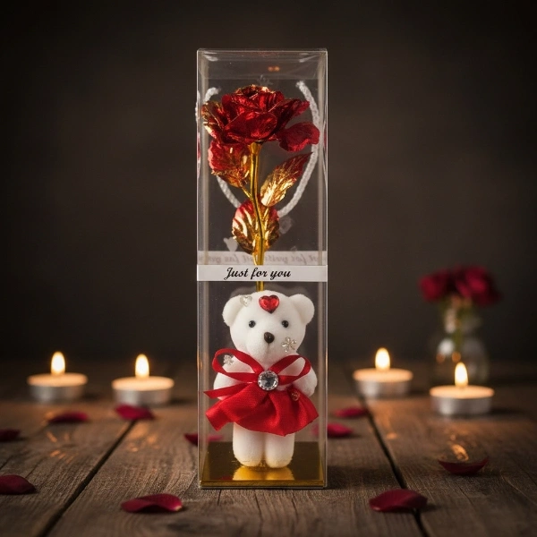 Şeffaf Kutulu Ayıcıklı Sonsuzluk Gülü