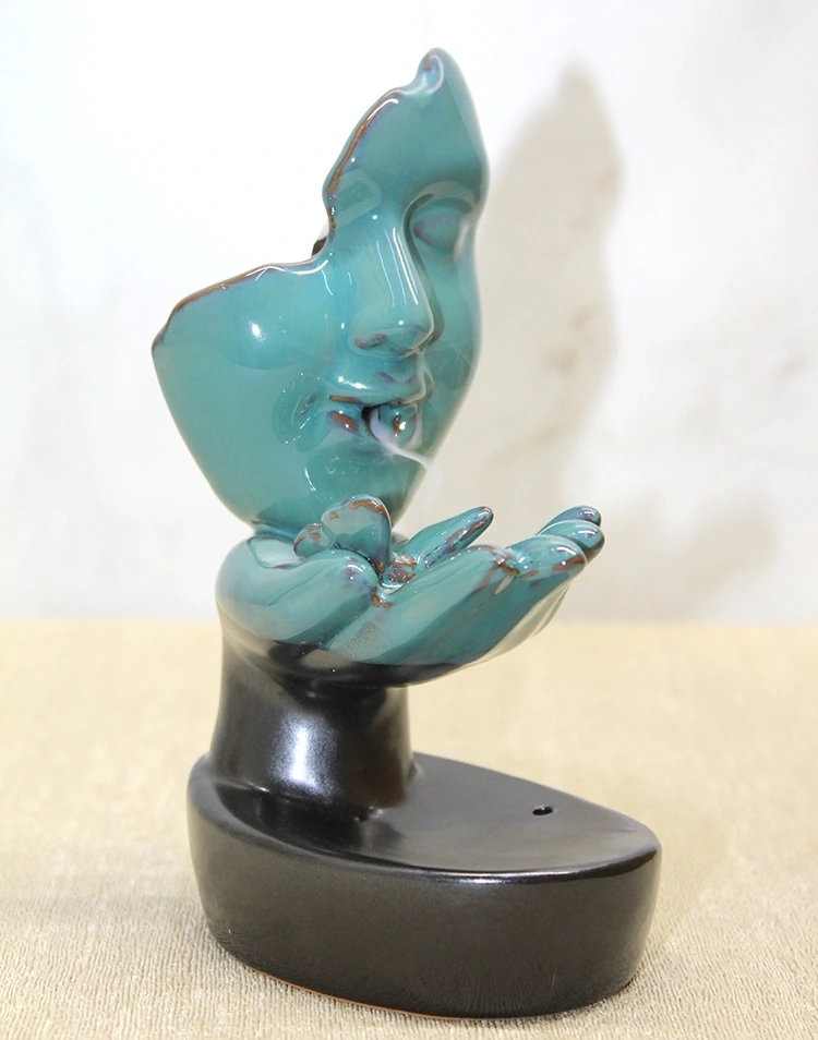 SERAMİK MASK TASARIMLI GERİ AKIŞ TÜTSÜLÜKÜrün ÖzellikleriSeramik Mask Tasarımlı Geri Akış Tütsülük, mistik mask formu ve modern hatlarıyla hem dekoratif hem de aromaterapi amaçlı kullanılabilen etkileyici bir tasarımdır. 10x7 cm boyutundaki kompakt yapısı sayesinde çalışma masasında, meditasyon köşelerinde, oturma odalarında veya hediye amaçlı kullanımda ideal bir tercih sunar. Seramik malzeme kullanılarak üretilen bu tütsülük, yüksek ısıya dayanıklı yapısıyla geri akış konik tütsülerin güvenli bir şekilde kullanılmasını sağlar. Geri akış özelliği sayesinde tütsü dumanı maskenin içinden aşağı doğru süzülerek görsel olarak sakinleştirici ve estetik bir şelale etkisi oluşturur. Ortama dinginlik katan duman akışı, hem ruhsal rahatlama hem de dekoratif zenginlik sunar.Paket İçeriği1 adet Seramik Mask Tasarımlı Geri Akış Tütsülük