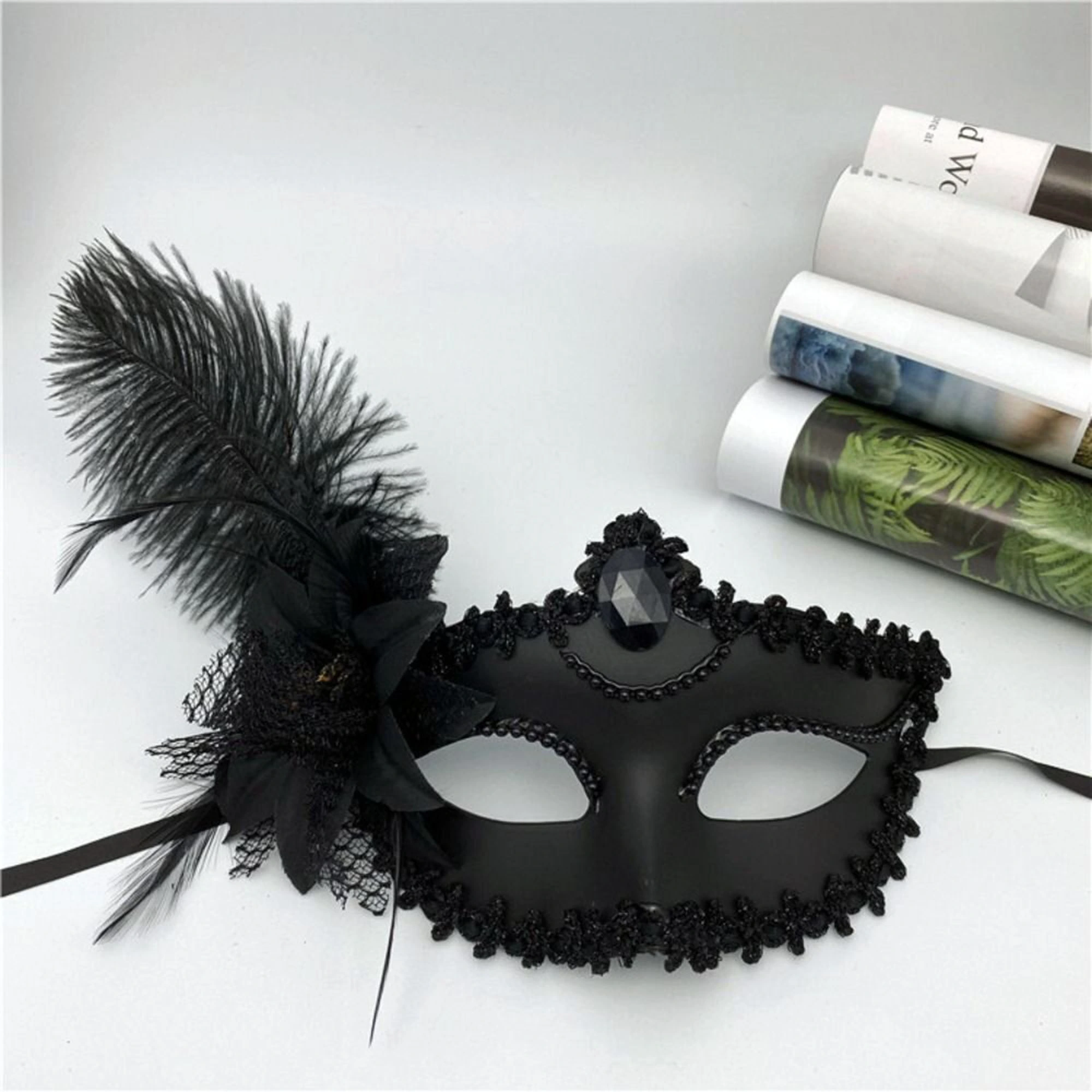 Siyah Mat Renk Yandan Tüylü Güllü Parti Balo Venedik Maskesi