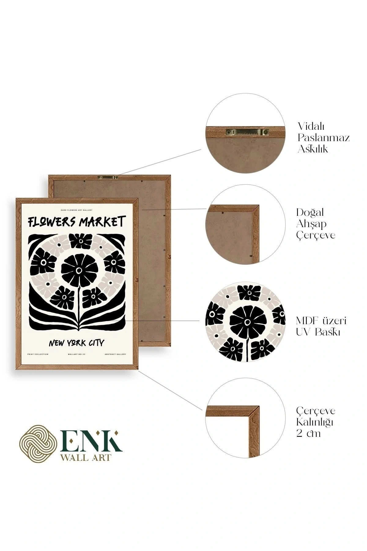 Tablolarımız gerçek ahşap çerçevelidir, çerçeve görünümlü değildir. ; ENK Wall Art Olarak Ahşap Çerçeveli Tablolar Üretiyoruz. ; Tablolarımız tek parça, 3 Parça, 5 Parça ve daha çok kategoride tasarımcılarımız tarafından ev ve ofisleriniz duvarları süslemek için tasarlanmaktadır. ; Ahşap Çerçeveli Duvar Tabloları ile yaşam alanlarınıza yepyeni bir görünüm kazandırın. ; Yıllarca dayanacağından emin olduğumuz sağlam çerçevelere sahip yüksek kaliteli ahşaptan üretilmiştir. ; İster bir köşeyi süslemek isteyin, ister evinizi yenilemek , bu ahşap tablolar herhangi bir yaşam alanına stil ve işlev getirecektir. ; Duvara kolay bir şekilde monte edilir. ; Uzun ömürlü kullanım için sağlam ahşap çerçeveden yapılmış, dayanıklı ve güçlü. ; Duvara monte edilebilir tasarımı, yaşam alanlarında veya yatak odalarında duvara kolayca asılmasını sağlar. ; Pürüzsüz üst yüzeyi temiz kalmayı kolaylaştırır. ; Herhangi bir stile uyacak şekilde çeşitli renklerde gelir. ; Kolay yeniden düzenleme için hafif ve portatif. ; Küçük oturma odaları veya dar alanlar için mükemmel boyut. ; Eve taşınma hediyesi olarak idealdir. ; Herhangi bir evin dekorunu süslemek için harika bir yol. ; Herhangi bir modern veya çağdaş iç tasarıma mükemmel bir katkı. ; Tablo içi 3 mm mdf (ahşap) malzeme üzeri uv baskıdır. ; Renkler canlı ve solma yapmaz. ; Kırılma, bükülme ve çizilmeye karşı dayanıklıdır.;