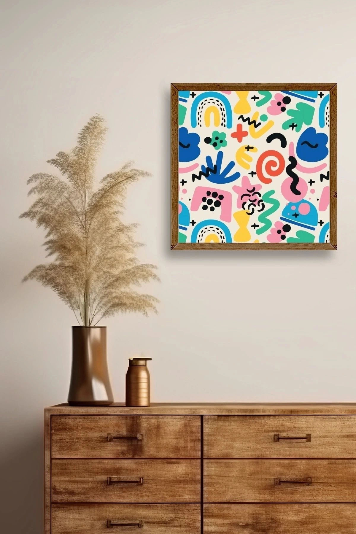 Soyut Ahşap Çerçeveli Tablo 50 x 50