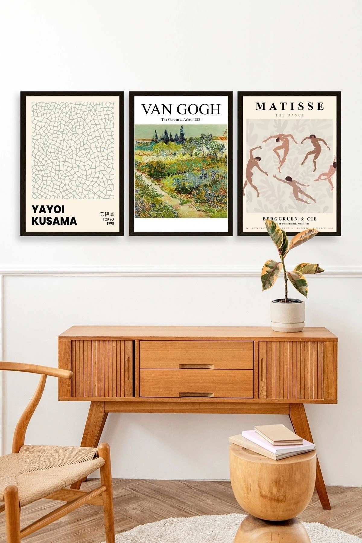 Ünlü Tablolar Üçlü Ahşap Çerçeveli Tablo 23 x 30