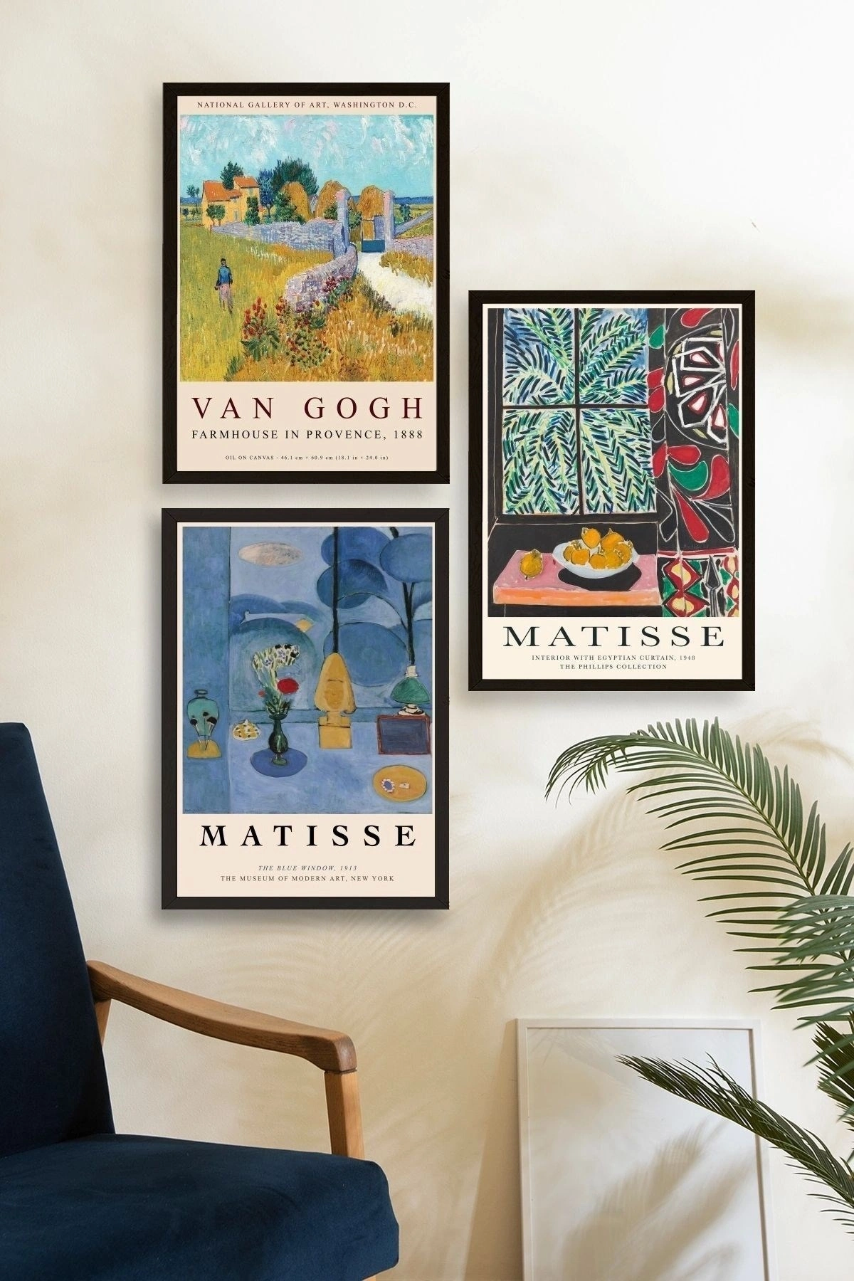 Ünlü Tablolar Üçlü Ahşap Çerçeveli Tablo 23 x 30