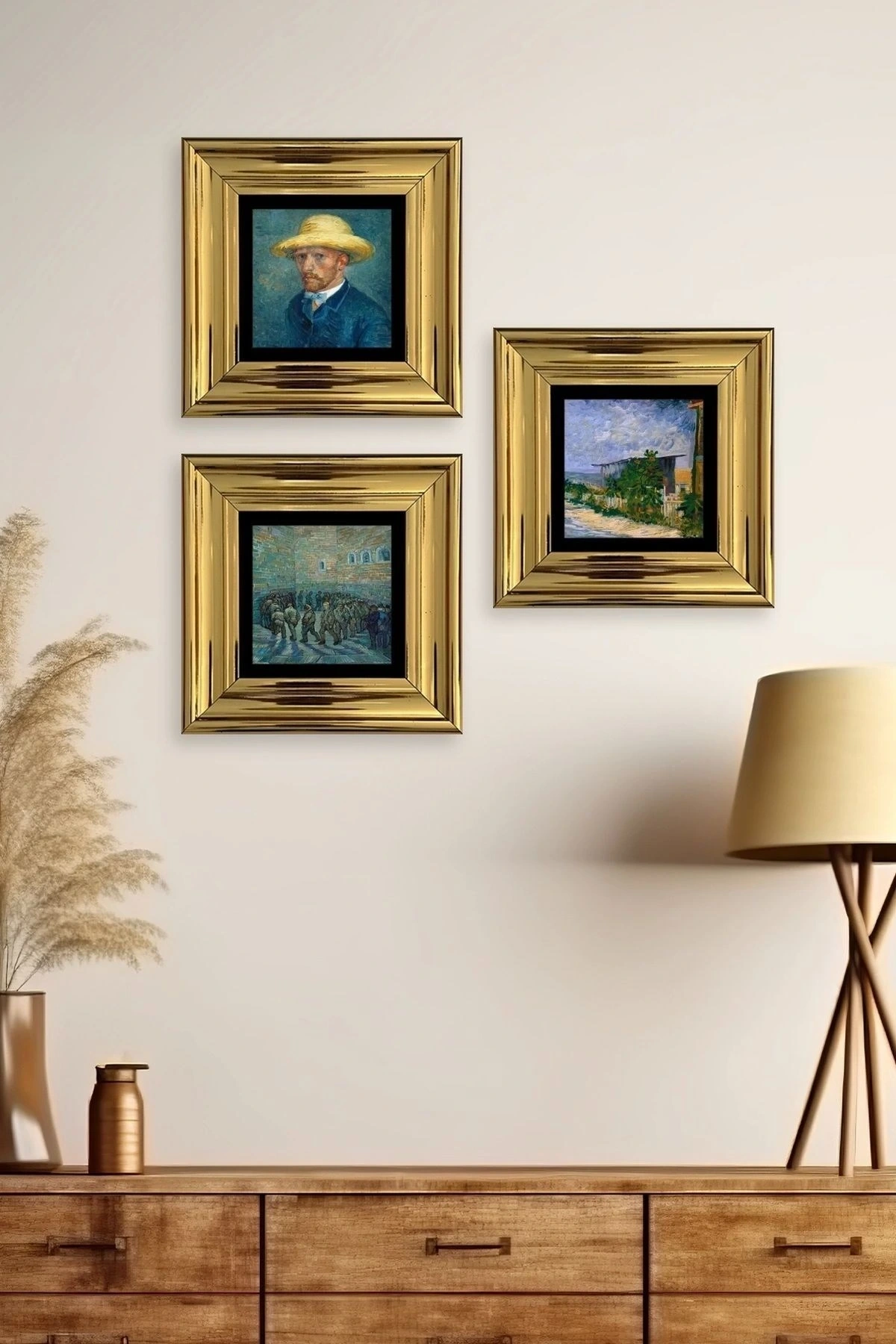 Van Gogh 3 lü Set Çerçeveli Taş Tablo 20 cm