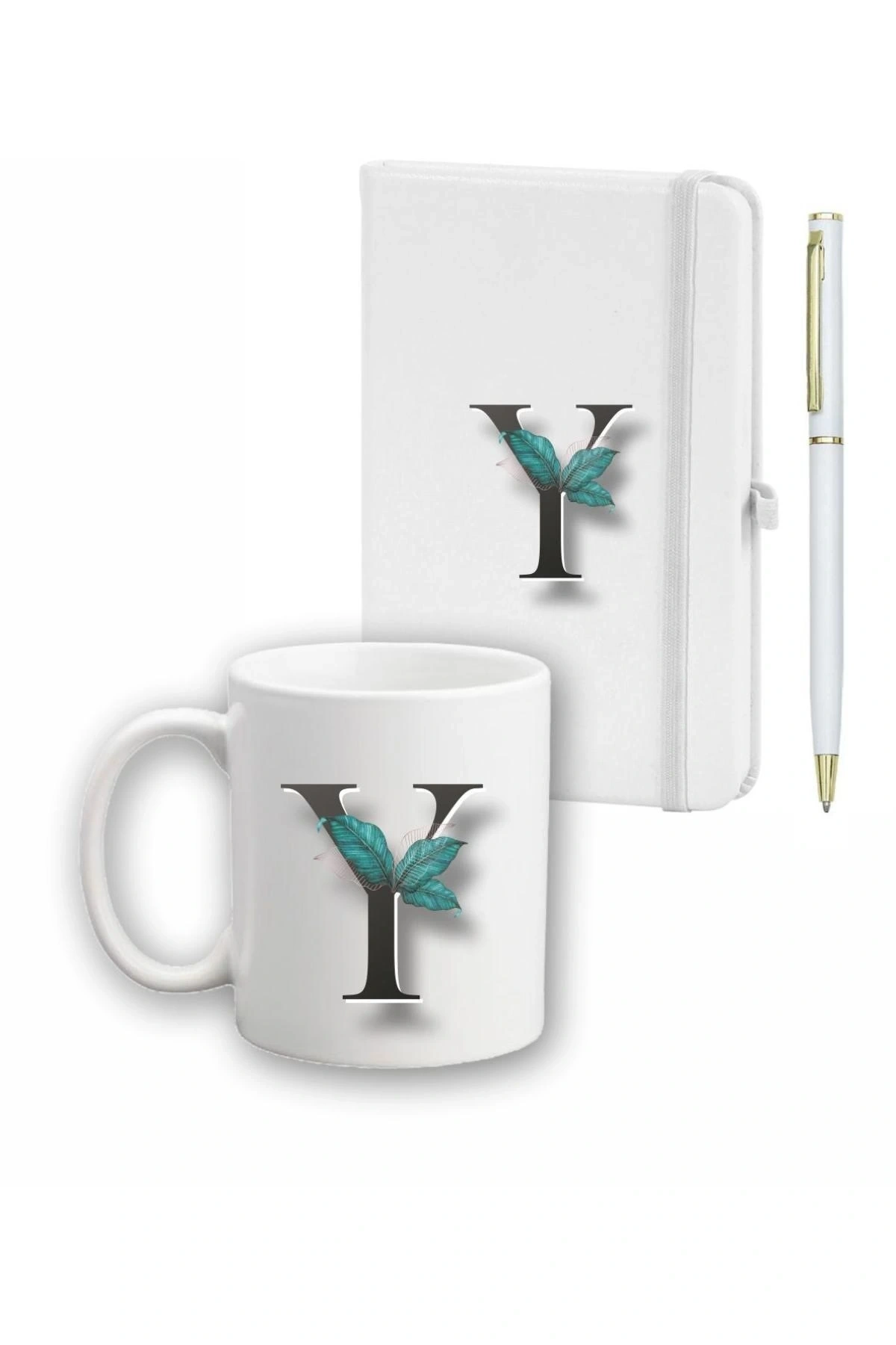 Yaprak Desen Ajanda Kupa Ve Kalem Seti