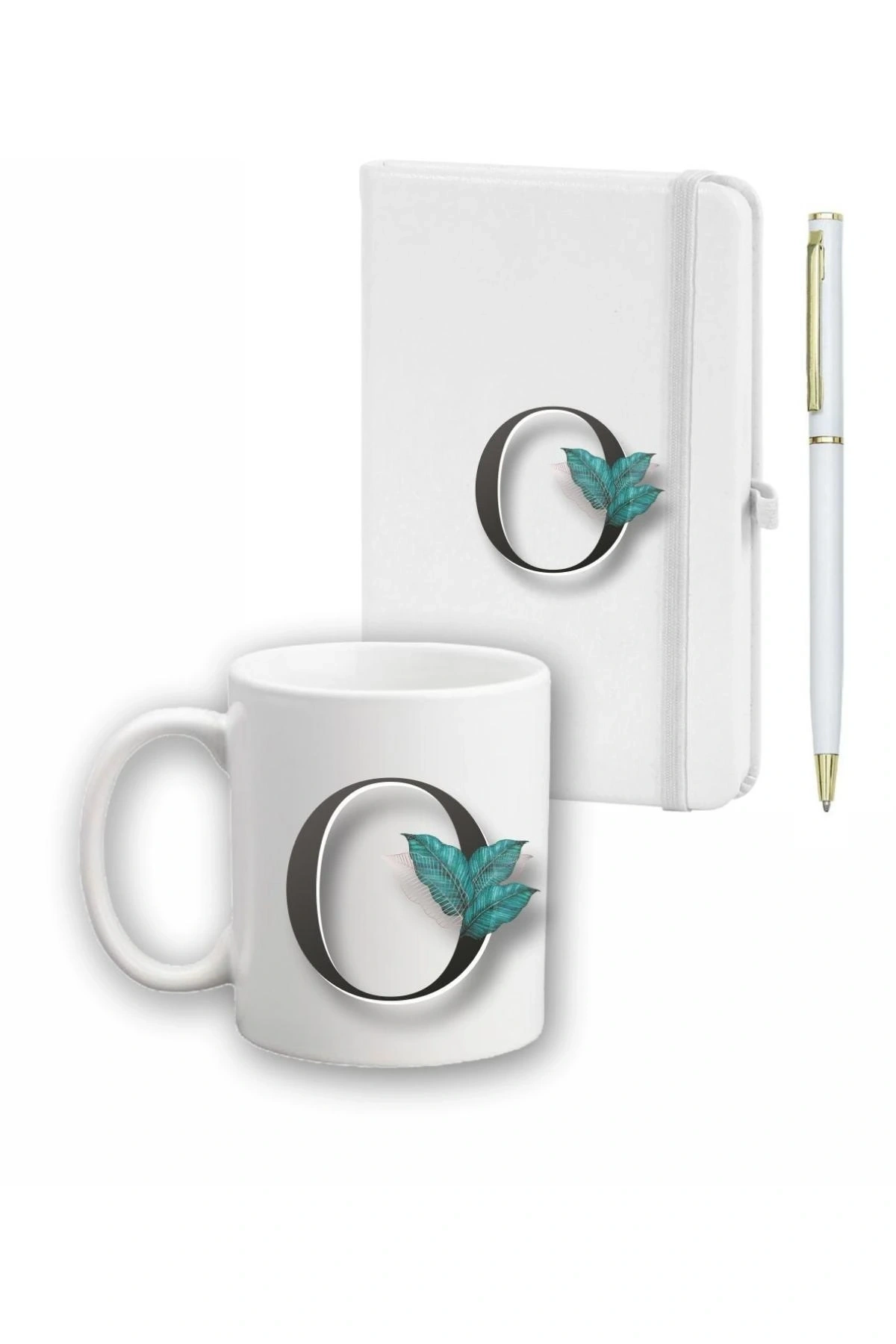 Yaprak Desen Ajanda Kupa ve Kalem Seti
