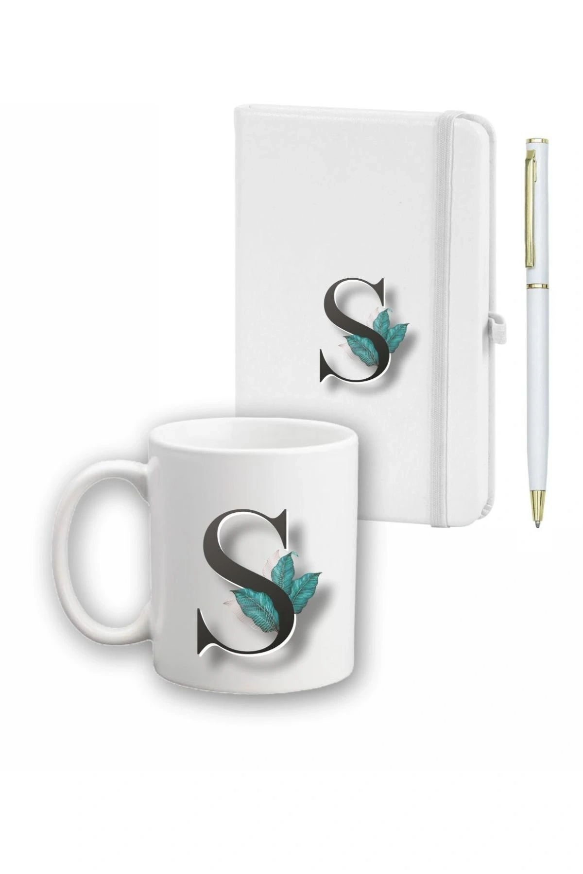 Yaprak Desen Ajanda Kupa ve Kalem Seti