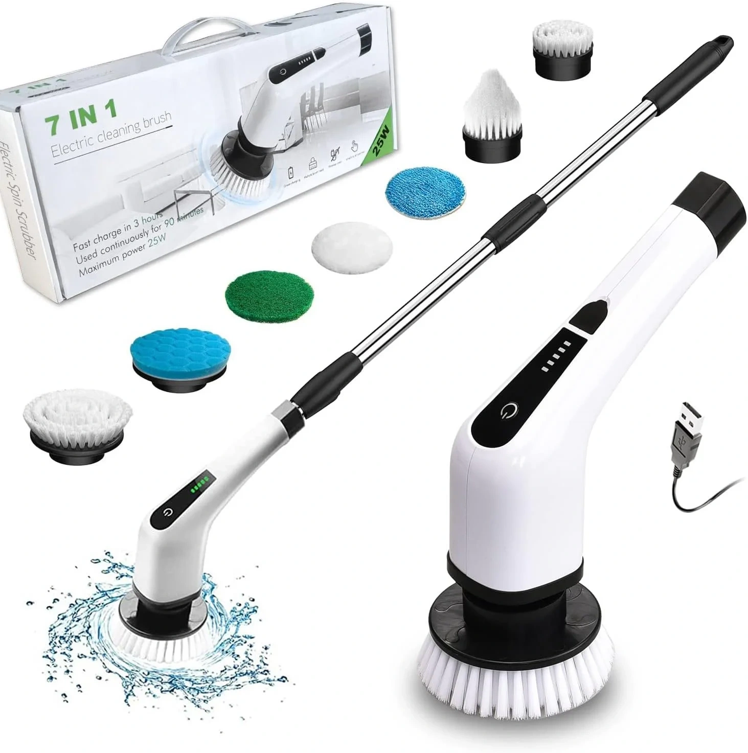 Elektrikli Temizlik Fırçası, Şarjlı Temizlik Fırçası 7 Adet Farklı Başlık ile, Mutfak ve Banyolarda Birçok Temizlik Görevi için, Küvet, Duş, Fayans ve Zemin İçin Temizlik Malzemeleri