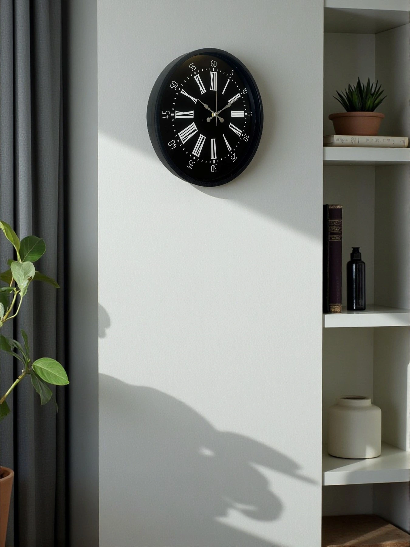 Modern, sade ve zamansız bir tasarım arayanların favorisi olmaya aday 36 cm Siyah Duvar Saati, güçlü ve şık görünümü ile bulunduğu her ortama karakter katar. Siyah çerçeve ile siyah zemin üzerinde kullanılan beyaz Roma rakamlarının oluşturduğu zarif kontrast, saatin duvarda çok şık ve profesyonel bir görünüm sunmasını sağlar. Minimalist, modern ve maskülen dekorasyon tarzlarının tamamlayıcısı olan bu saat, ev ve iş yerleri için mükemmel bir dekoratif parçadır.