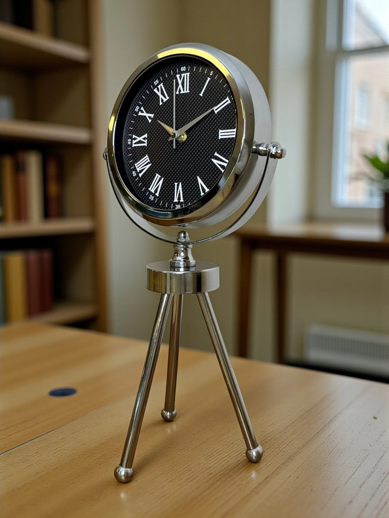 45 x 25 cm ölçülerindeki bu şık krom üç ayaklı masa saati, modern tasarımı ve parlak metal gövdesiyle her ortamda dikkat çeken zarif bir dekorasyon ürünüdür. Gerçek cam korumalı kadranı sayesinde uzun ömürlü ve net bir görüntü sunar. Sessiz çalışan mekanizması ile ev, ofis ve çalışma alanlarında konforlu bir kullanım sağlar. Dayanıklı metal tripod ayak yapısı, saati sadece bir zaman göstergesi değil aynı zamanda estetik bir obje haline getirir.